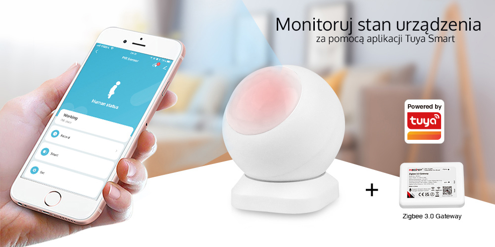 | Typ czujnika | PIR + Zigbee 3.0 (wykrywanie ciepła wypromieniowanego w paśmie podczerwieni i przekazanie go do urządzenia odbiorczego) |
