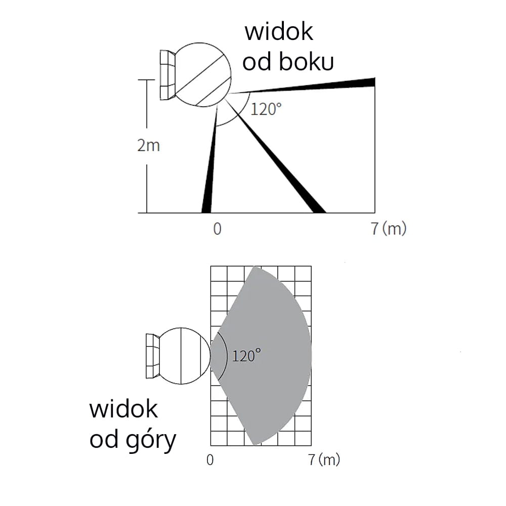 - Kąt detekcji czujnika to 120 stopni