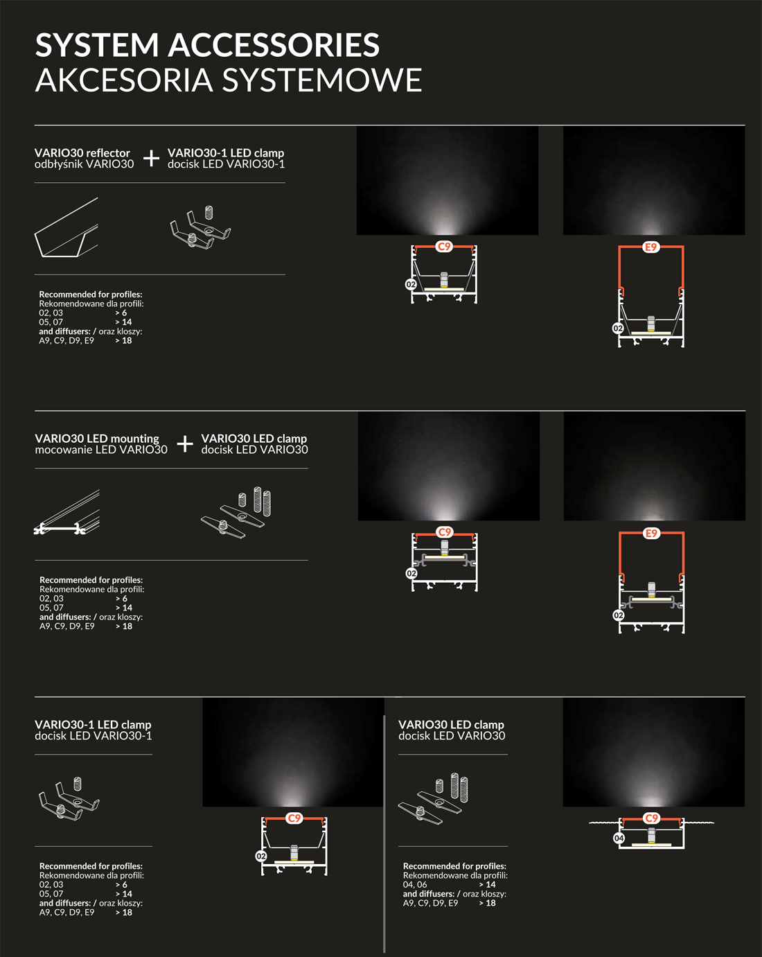 Docisk modułów LED do profili aluminiowych VARIO30 - kpl. 2 szt.