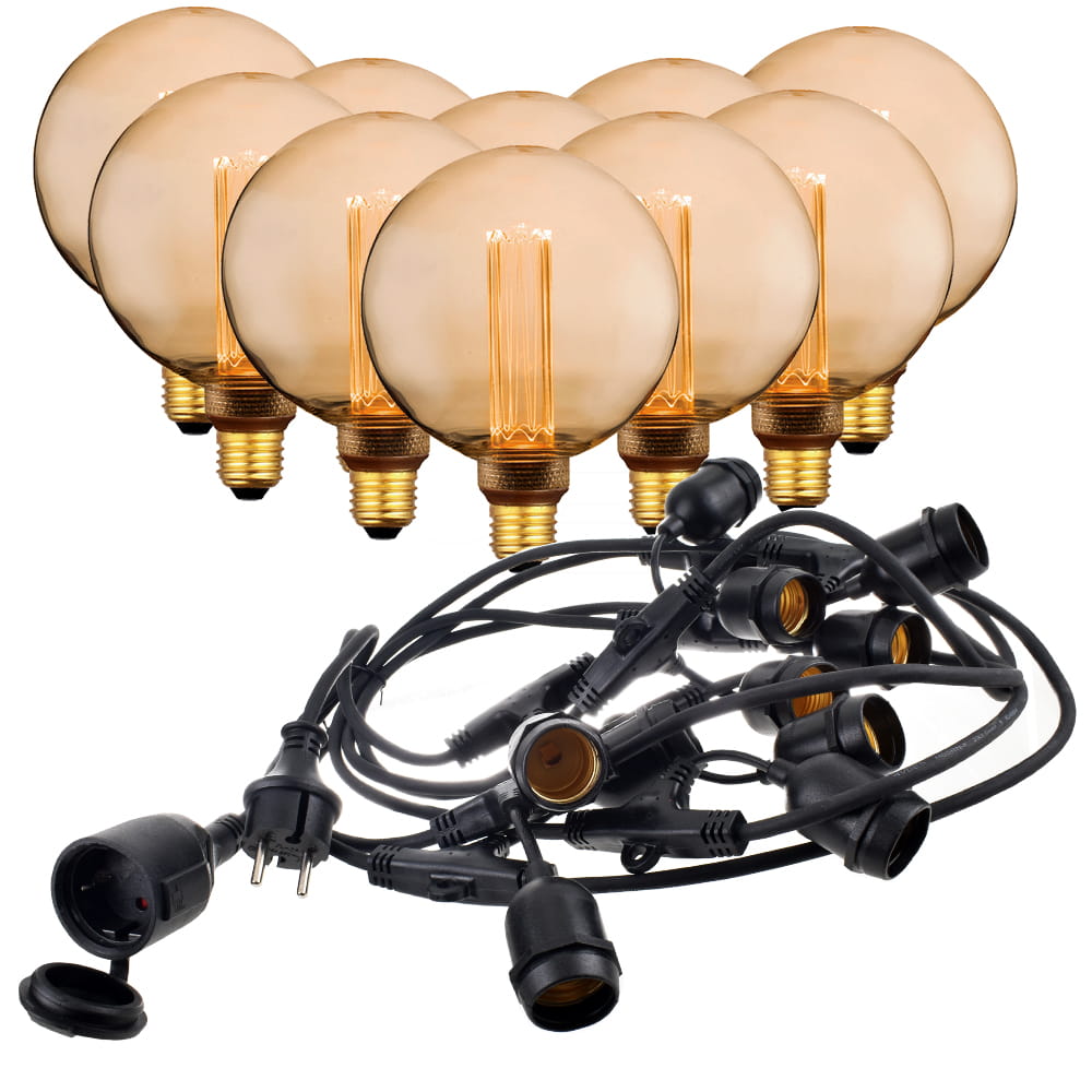 Girlanda ogrodowa 10mb z 10 żarówkami LED - E27 G125 4W 1800K - zestaw