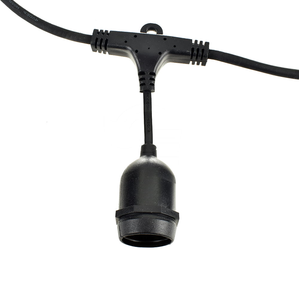 Girlanda wykonana z wysokiej jakości przewodu gumowego o długości 5 metrów z 10 żarówkami dekoracyjnymi LED E27 G45 2W w komplecie. Cechują się solidną konstrukcją oraz wysoką szczelnością (klasa ochronna IP44). Girlanda do żarówek zaopatrzona została w dodatkowe gniazdo pozwalające na łączenie szeregowo kolejnych sznurów świetlnych, co pozwala na dopasowanie długości do panujących potrzeb a ponadto zasilanie z jednego miejsca.