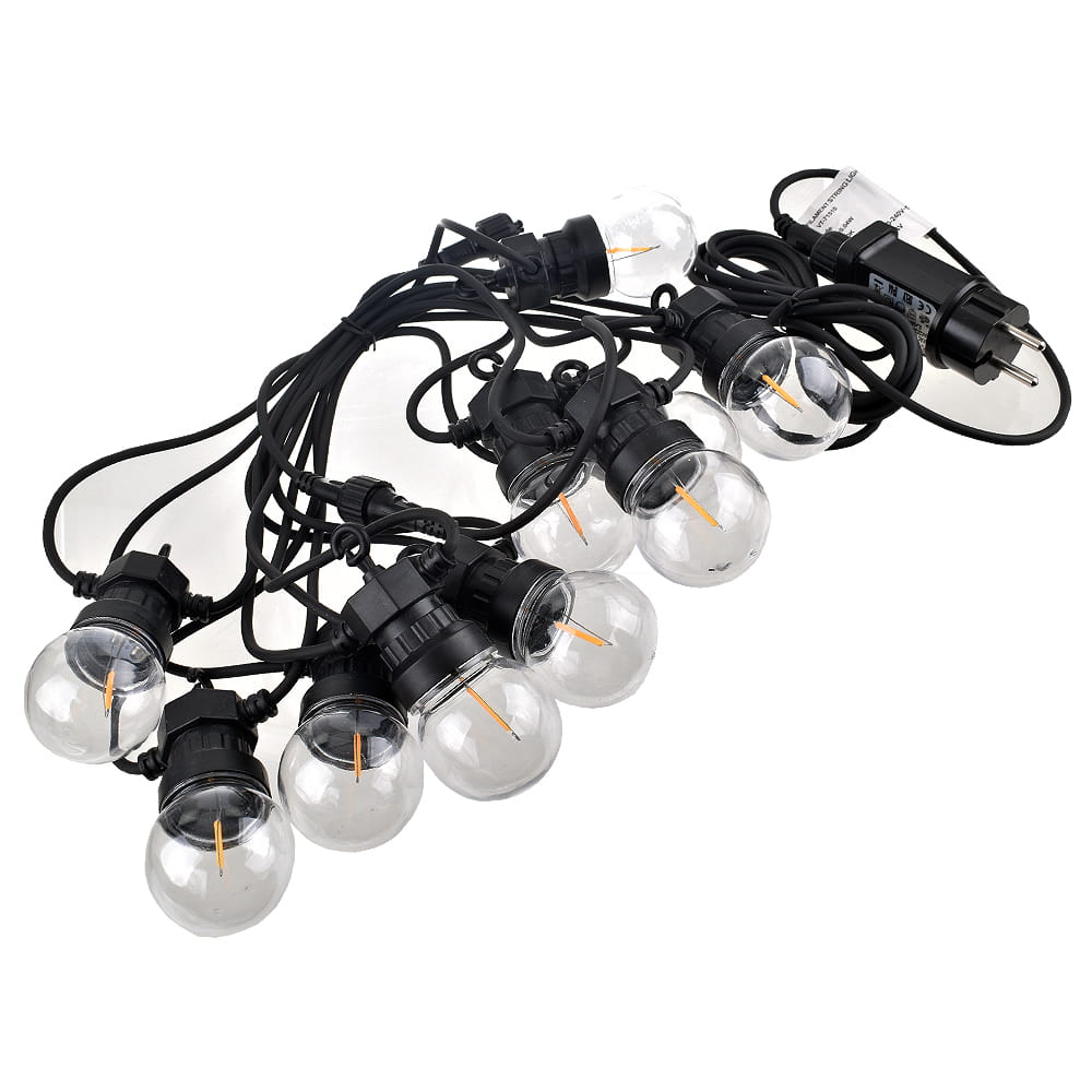 Girlanda wykonana z przewodu gumowego o długości 5 metrów z 10 modułami LED 0,4W w komplecie. Cechuje się solidną konstrukcją oraz wysoką szczelnością (klasa ochronna IP44). Girlanda do żarówek zaopatrzona została w dodatkowe gniazdo pozwalające na łączenie szeregowo kolejnych sznurów świetlnych, co pozwala na dopasowanie długości do panujących potrzeb a ponadto zasilanie z jednego miejsca.