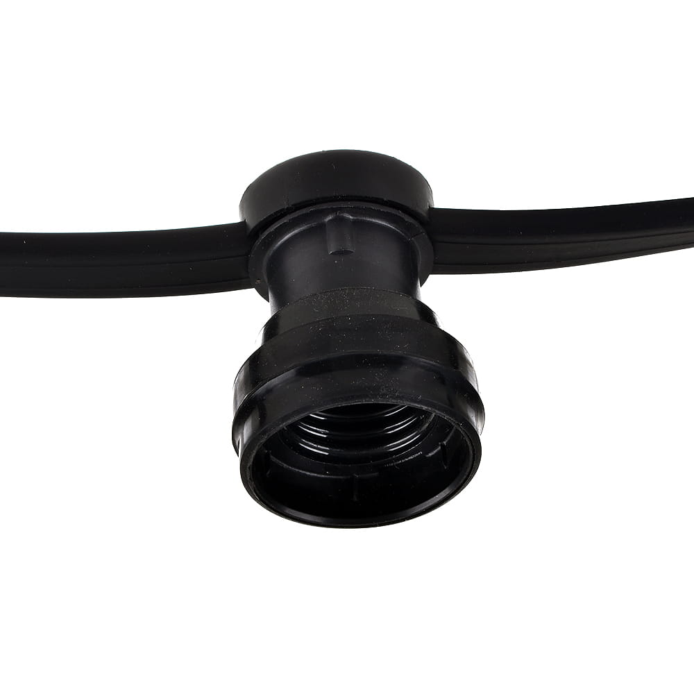 Girlanda wykonana z wysokiej jakości grubego przewodu gumowego o długości 15 metrów z 15 hermetycznymi gniazdami E27. Produkt wyposażony jest we wtyczki przystosowane do pracy w każdych warunkach. Cechuje się solidną konstrukcją oraz wysoką szczelnością (klasa ochronna IP44). Girlanda ogrodowa do żarówek zaopatrzona została w końcowe gniazdo hermetyczne pozwalające na łączenie szeregowo kolejnych sznurów świetlnych, co pozwala na dopasowanie długości do panujących potrzeb a ponadto zasilanie z jednego miejsca. Kompatybilna jest z szeroką gamą żarówek dostępnych w naszym asortymencie, w szczególności będą to żarówki dekoracyjne LED oraz żarówki LED filament o różnych, kształtach, barwach czy budowie. Girlanda produkowana jest z wysokiej jakości podzespołów, co gwarantuje wysoką jakość oraz długą żywotność.