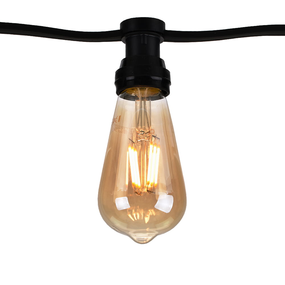 Girlanda wykonana z wysokiej jakości grubego przewodu gumowego o długości 15 metrów z 30 hermetycznymi gniazdami E27. Produkt wyposażony jest we wtyczki przystosowane do pracy w każdych warunkach. Cechuje się solidną konstrukcją oraz wysoką szczelnością (klasa ochronna IP44). Girlanda ogrodowa do żarówek zaopatrzona została w końcowe gniazdo hermetyczne pozwalające na łączenie szeregowo kolejnych sznurów świetlnych, co pozwala na dopasowanie długości do panujących potrzeb a ponadto zasilanie z jednego miejsca. Kompatybilna jest z szeroką gamą żarówek dostępnych w naszym asortymencie, w szczególności będą to żarówki dekoracyjne LED oraz żarówki LED filament o różnych, kształtach, barwach czy budowie. Girlanda produkowana jest z wysokiej jakości podzespołów, co gwarantuje wysoką jakość oraz długą żywotność.