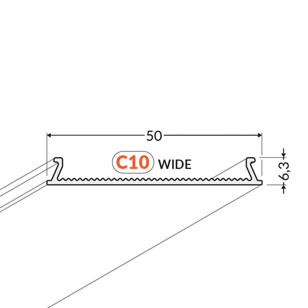 Klosz C10 WIDE to produkt, którego podstawową funkcją jest estetyczne zamknięcie profilu oraz zabezpieczenie go przed czynnikami zewnętrznymi. Klosz zatrzaskowy stosowany jest w przypadkach gdy nie posiadamy miejsca na wsunięcie tradycyjnych kloszy z boku. Klosza nie trzeba wsuwać - wystarczy go tylko wcisnąć, nawet w przypadku już wcześniejszego montażu profilu we wnęce. Zalety tego produktu doceni każdy instalator, który ceni swój czas a zarazem satysfakcję klienta. Racjonalny dobór klosza o odpowiedniej transparentności pozwala na uzyskanie oczekiwanego efektu świetlnego, takiego jak jego rozproszenie czy pochłanianie światła. Wersja WIDE posiada ryflowaną powierzchnię po wewnętrznej stronie.