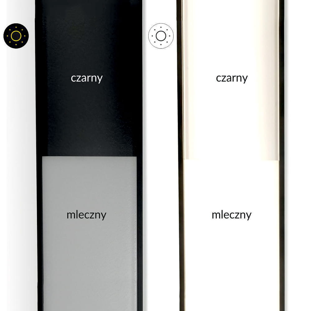 Dzięki zastosowaniu odpowiednich materiałów w procesie produkcji klosz "C3" czarny doskonale komponuje się z kompatybilnymi czarnymi profilami LED - tworząc jednolitą czarną powierzchnię. Mimo tego, iż jest to klosz czarny osiąga on dobrą sprawność w przepuszczaniu światła na poziomie 40%. Czarny klosz nie zmienia także barwy światła zainstalowanego w profilu. Poniższe zdjęcie prezentuje zastosowanie czarnego klosza w profilu aluminiowym LED przy załączonym oświetleniu oraz bez niego.