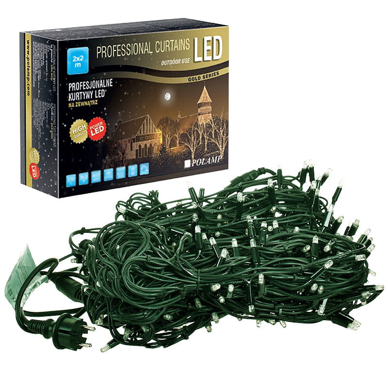 Kurtyna świetlna LED do zastosowania zarówno na zewnątrz jak i wewnątrz z kolekcji złotej z 400 diodami LED o wymiarach 2x2mb. Kurtyny LED znajdują zastosowanie szczególnie do ozdabiania elewacji, okien, balkonów, tarasów, dachów oraz aranżacji wewnętrznej i zewnętrznej.