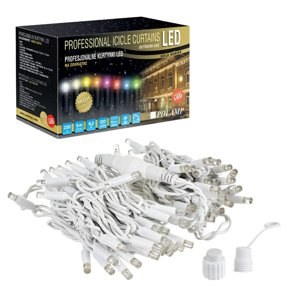 Prezentowane kurtynki świąteczne LED dzięki wysokiej klasie hermetyczności (IP65) z powodzeniem poradzą sobie przy niekorzystnych warunkach atmosferycznych takich jak niska temperatura czy duża wilgotności powietrza.