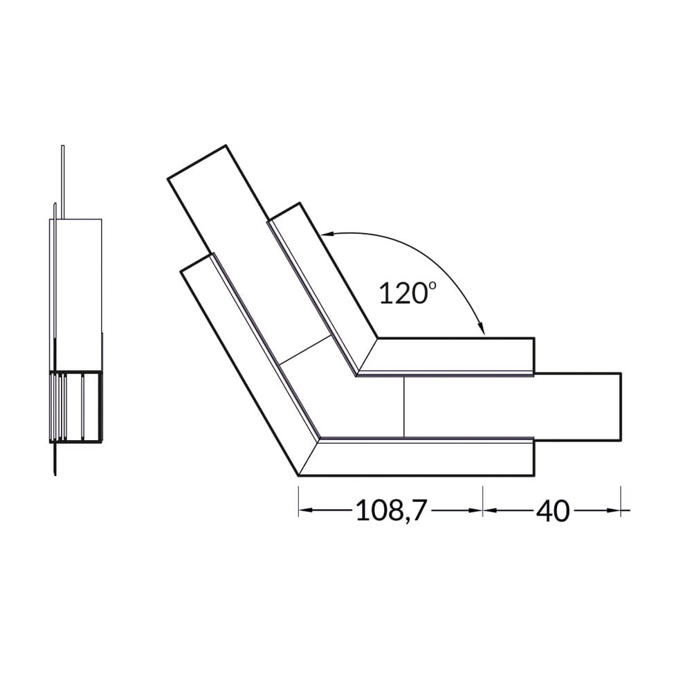 Łącznik wykonany z aluminium anodowanego, służący do łączenia kątowego (120°) profilu aluminiowego LED VARIO30-05. Wyrób stanowi doskonałe rozwiązanie, gdzie konieczne jest połączenie dwóch profili aluminiowych pod kątem. To idealna alternatywa zwiększająca zakres montażu profilu aluminiowego LED. Dodatkowo w zestawie znajdują się przezroczyste wkładki stabilizujące, które znajdują zastosowanie we wzmocnieniu łączenia od wewnątrz profilu oraz w przepuszczaniu emitowanego światła na całej powierzchni klosza (również w rogu). Łączniki umożliwiają tworzenie wielu różnych układów oświetlenia bez konieczności cięcia profilu pod kątem.