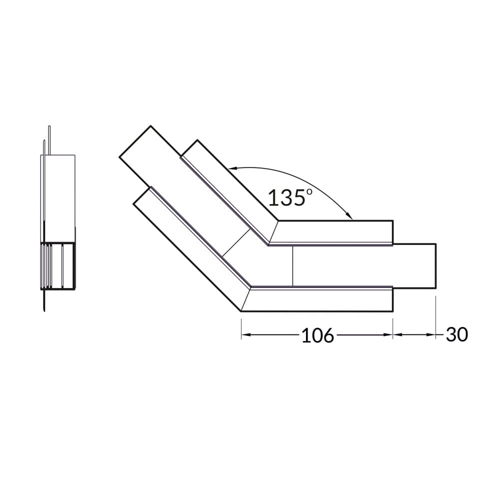 Łącznik wykonany z aluminium anodowanego, służący do łączenia kątowego (135°) profilu aluminiowego LED VARIO30-05. Wyrób stanowi doskonałe rozwiązanie, gdzie konieczne jest połączenie dwóch profili aluminiowych pod kątem. To idealna alternatywa zwiększająca zakres montażu profilu aluminiowego LED. Dodatkowo w zestawie znajdują się przezroczyste wkładki stabilizujące, które znajdują zastosowanie we wzmocnieniu łączenia od wewnątrz profilu oraz w przepuszczaniu emitowanego światła na całej powierzchni klosza (również w rogu). Łączniki umożliwiają tworzenie wielu różnych układów oświetlenia bez konieczności cięcia profilu pod kątem.