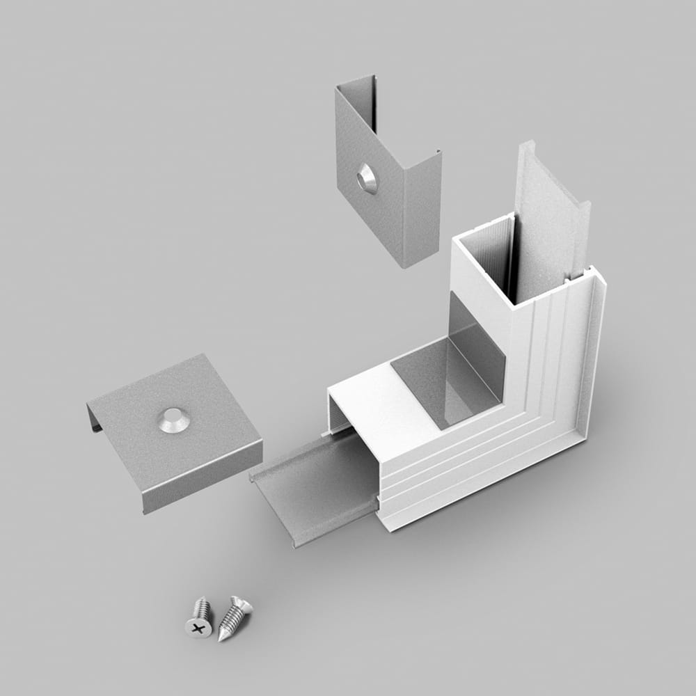 Łącznik kątowy gięty znajduje zastosowanie podczas łączenia profili, które znajdują się na dwóch różnych płaszczyznach, np. w narożnikach zewnętrznych. Łączniki umożliwiają tworzenie wielu różnych układów oświetlenia bez konieczności cięcia profilu pod kątem.