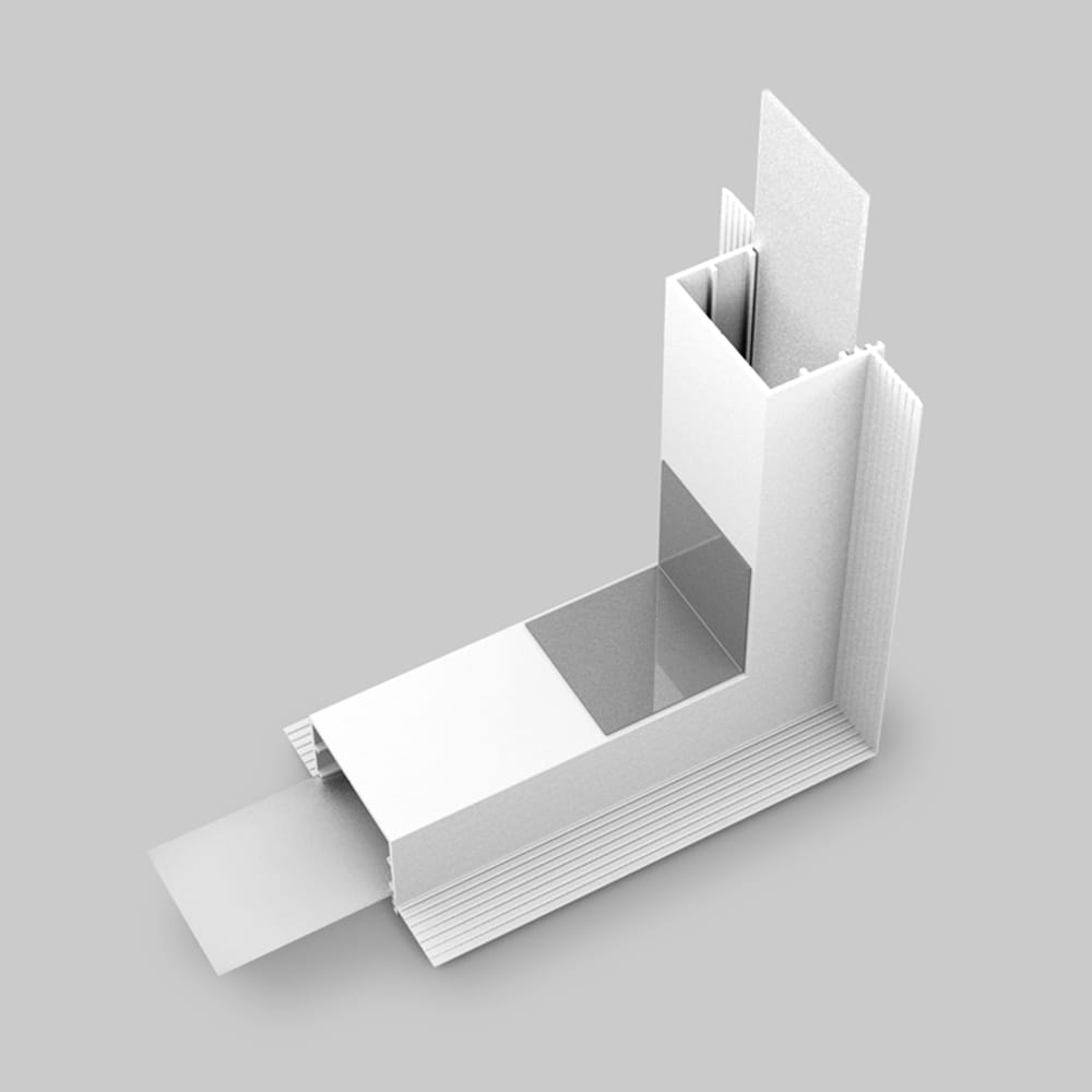 Łącznik kątowy gięty znajduje zastosowanie podczas łączenia profili, które znajdują się na dwóch różnych płaszczyznach, np. w narożnikach zewnętrznych. Łączniki umożliwiają tworzenie wielu różnych układów oświetlenia bez konieczności cięcia profilu pod kątem.