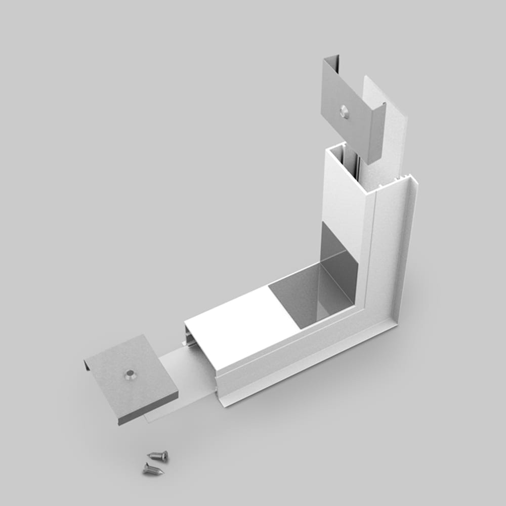 Łącznik kątowy gięty znajduje zastosowanie podczas łączenia profili, które znajdują się na dwóch różnych płaszczyznach, np. w narożnikach zewnętrznych. Łączniki umożliwiają tworzenie wielu różnych układów oświetlenia bez konieczności cięcia profilu pod kątem.