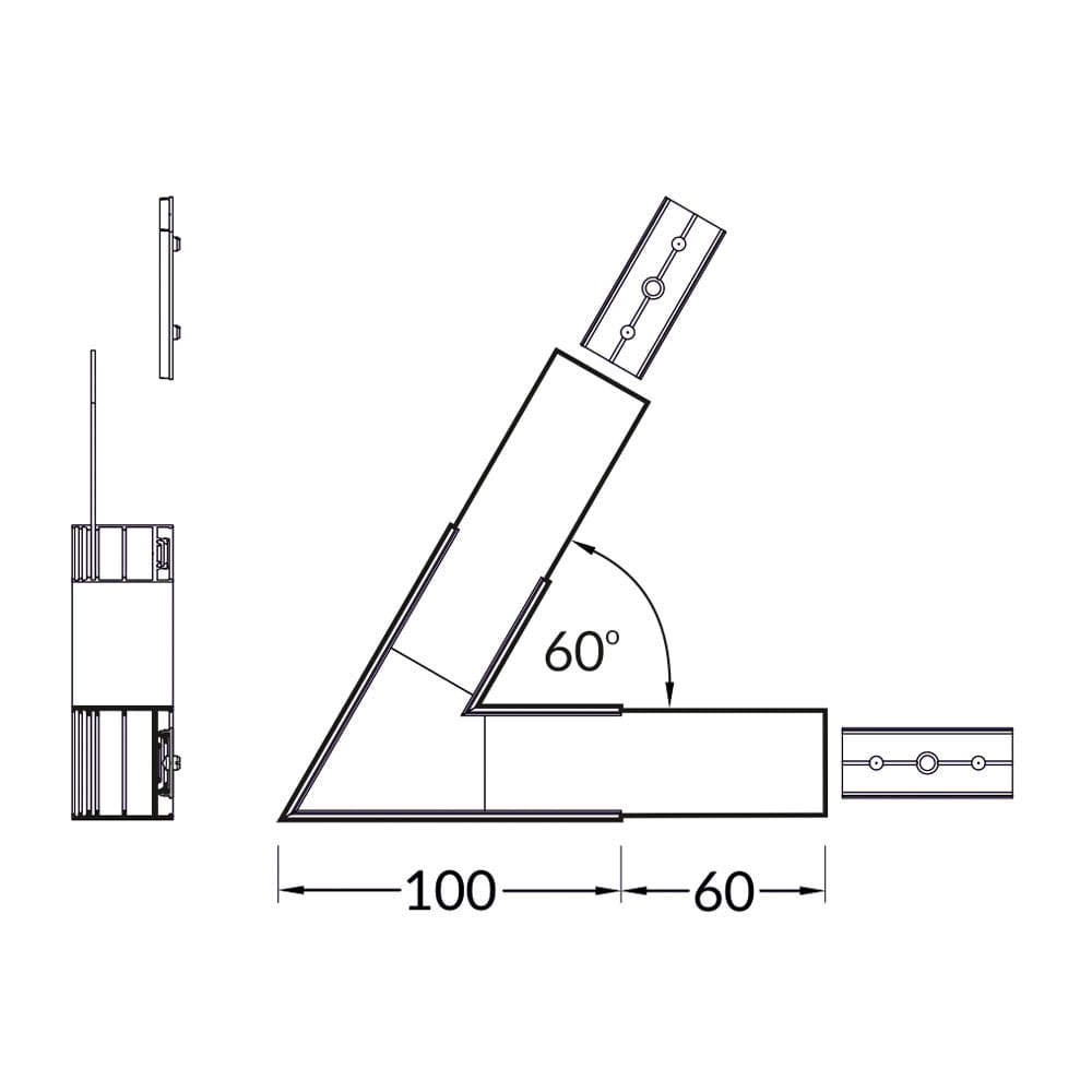 Łącznik wykonany z aluminium anodowanego w kolorze czarnym, służący do łączenia kątowego (60°) profilu aluminiowego LED VARIO20-02. Wyrób stanowi doskonałe rozwiązanie, gdzie konieczne jest połączenie dwóch profili aluminiowych pod kątem. To idealna alternatywa zwiększająca zakres montażu profilu aluminiowego LED. Dodatkowo w zestawie znajdują się przezroczyste wkładki stabilizujące, które znajdują zastosowanie we wzmocnieniu łączenia od wewnątrz profilu oraz w przepuszczaniu emitowanego światła na całej powierzchni klosza (również w rogu). Łączniki umożliwiają tworzenie wielu różnych układów oświetlenia bez konieczności cięcia profilu pod kątem. Produkt dzięki dołączonym łącznikom oraz wkrętom pozwala na łatwy i szybki montaż.