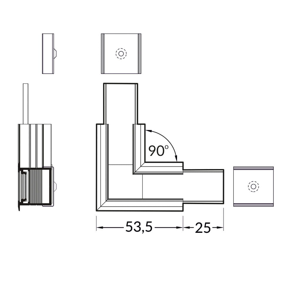 Łącznik kątowy 90° anodowany do profilu aluminiowego LED LINEA-IN20