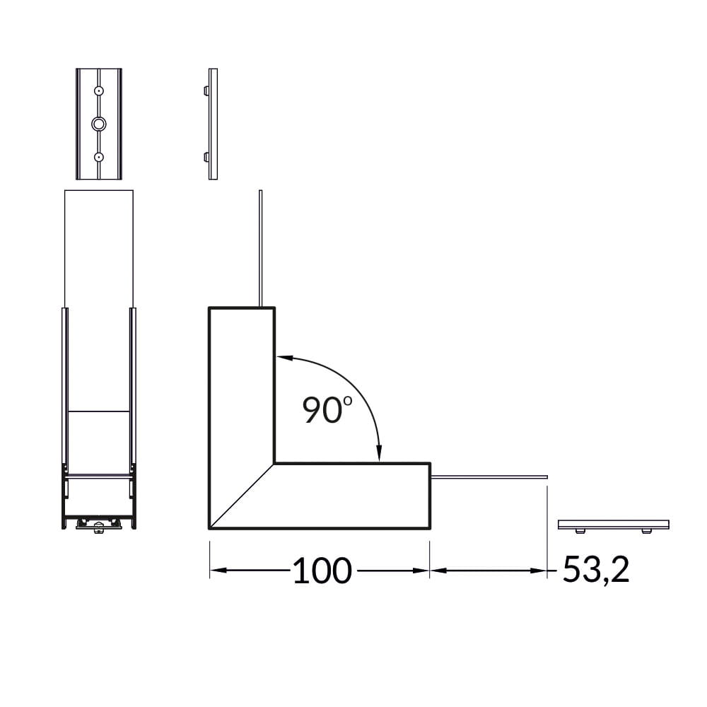 Łącznik kątowy gięty znajduje zastosowanie podczas łączenia profili, które znajdują się na dwóch różnych płaszczyznach, np. z podłogi na ścianę lub ze ściany na sufit (przykładowe realizacje możesz zobaczyć w galerii). Łączniki umożliwiają tworzenie wielu różnych układów oświetlenia bez konieczności cięcia profilu pod kątem.