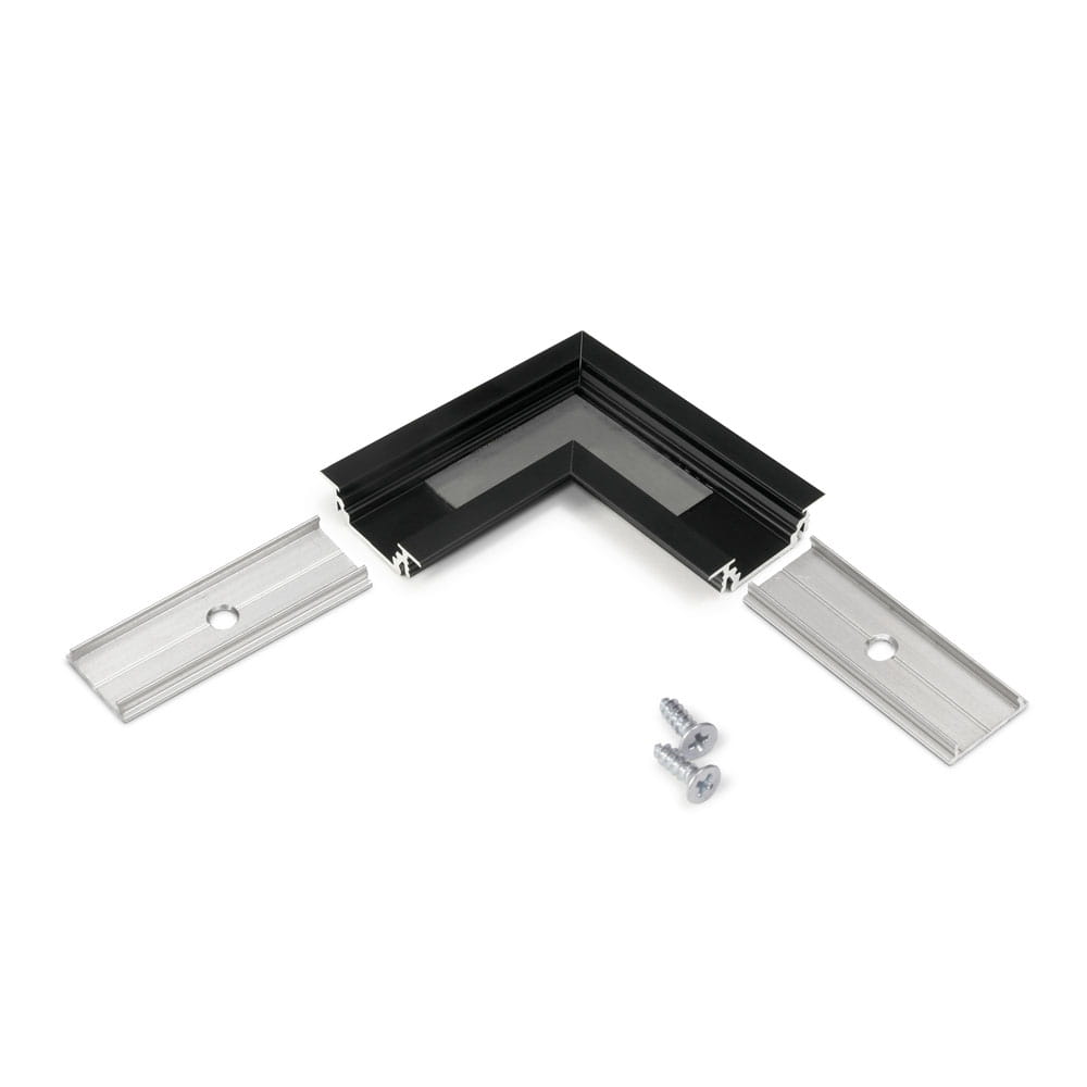 Łącznik wykonany z aluminium anodowanego w kolorze czarnym, służący do łączenia kątowego (90°) profilu aluminiowego LED GROOVE10. Wyrób stanowi doskonałe rozwiązanie, gdzie konieczne jest połączenie dwóch profili aluminiowych w kąt prosty. To idealna alternatywa zwiększająca zakres montażu profilu aluminiowego LED. Produkt dzięki dołączonym łącznikom "X" oraz wkrętom pozwala na łatwy, szybki i stabilny montaż.
