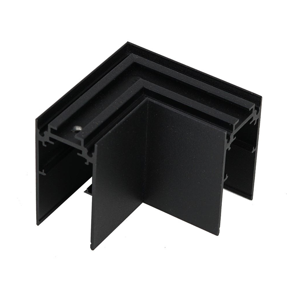 Łącznik szynoprzewodu magnetycznego natynkowego dedykowany do poziomego połączenia szyny pod kątem 90°. Szybkozłącze pozwala połączyć dwie szyny magnetyczne w jeden obwód, tworząc dzięki temu kompletny układ szynoprzewodów.