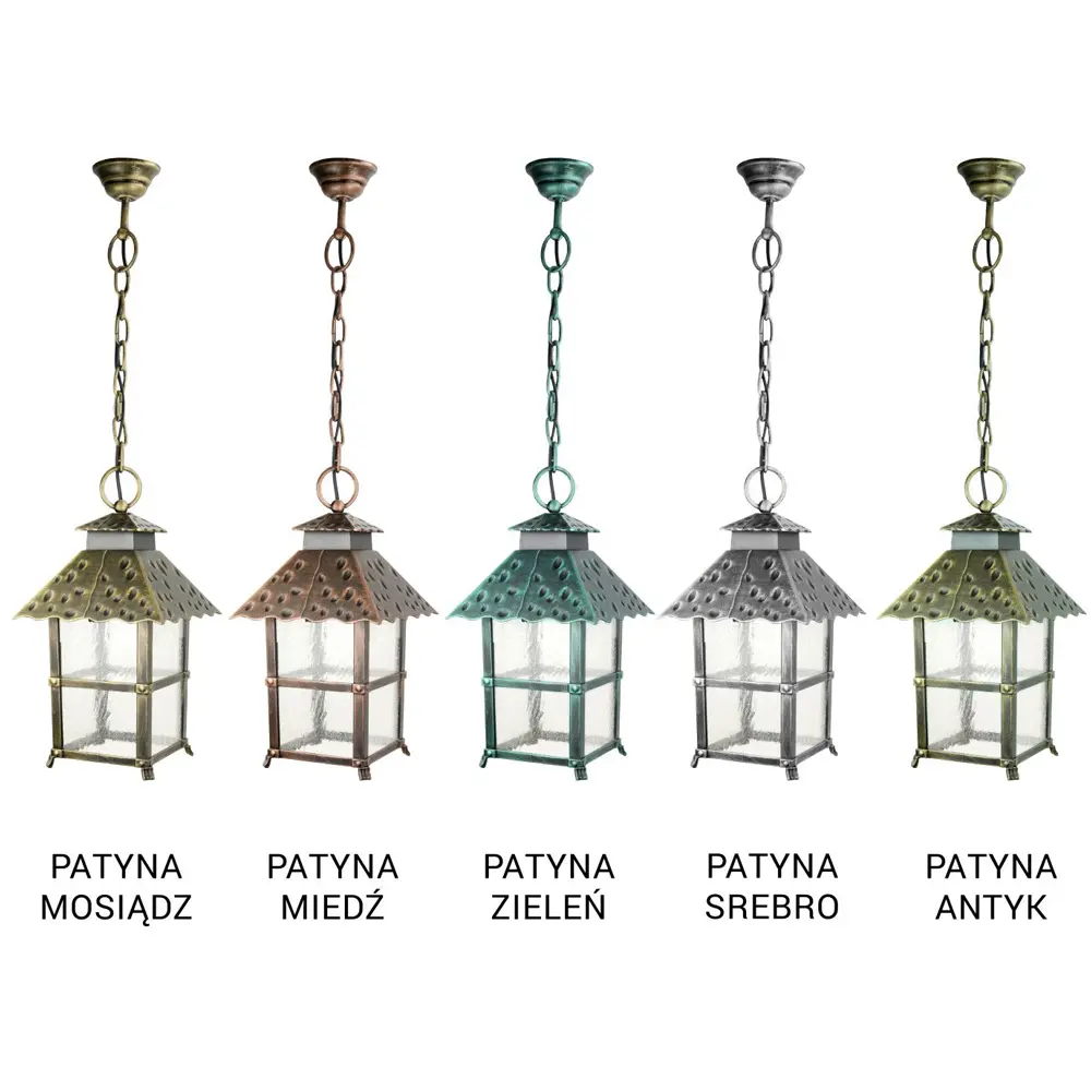 Lampy ogrodowe elewacyjne, stojące, wiszące oraz głowice serii CADIZ oprócz podstawowej wszechobecnej czarnej wersji posiadają także możliwość wykonania oprawy w sześciu wariantach kolorystycznych patyn ( mosiądz, srebro, miedź, zieleń oraz antyk). Zastosowanie takiego rozwiązania wyróżnia nasze lampy ogrodowe na tle innych, dostępnych na rynku, dodając im przy tym atrakcyjności i chrakternego, nieszablonowego wyglądu. To innowacyjne rozwiązanie pozwala na lepsze i bardziej sprecyzowane dopasowanie lampy do otoczenia oraz obowiązującej architektury. Oprawy wykonane z opcjonalnych patyn dostępne są na zamówienie z wyborem koloru w liście rozwijalnej powyżej " kolor lampy".