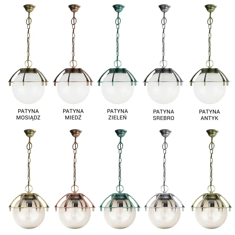 Lampy ogrodowe elewacyjne, stojące, wiszące oraz głowice serii KULE CLASSIC oprócz podstawowej wszechobecnej czarnej wersji posiadają także możliwość wykonania oprawy w sześciu wariantach kolorystycznych patyn ( mosiądz, srebro, miedź, zieleń oraz antyk). Zastosowanie takiego rozwiązania wyróżnia nasze lampy ogrodowe na tle innych, dostępnych na rynku, dodając im przy tym atrakcyjności i charakternego, nieszablonowego wyglądu. To innowacyjne rozwiązanie pozwala na lepsze i bardziej sprecyzowane dopasowanie lampy do otoczenia oraz obowiązującej architektury. Oprawy wykonane z opcjonalnych patyn dostępne są na zamówienie z wyborem koloru w liście rozwijalnej powyżej " kolor lampy".