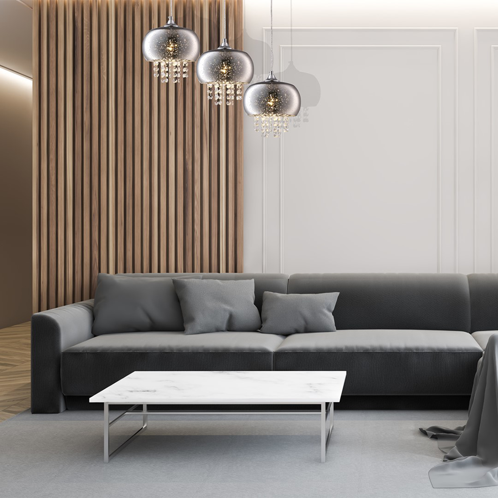 Lampa wisząca LED z serii STARLIGHT wyróżnia się szeroką gamą zastosowań oraz nowoczesnym i nieszablonowym wyglądem, który nada Twojemu wnętrzu niepowtarzalny charakter. Lampa Milagro wykonana została z metalu, szkła oraz kryształu, przystosowana pod żarówki z gwintem E14.