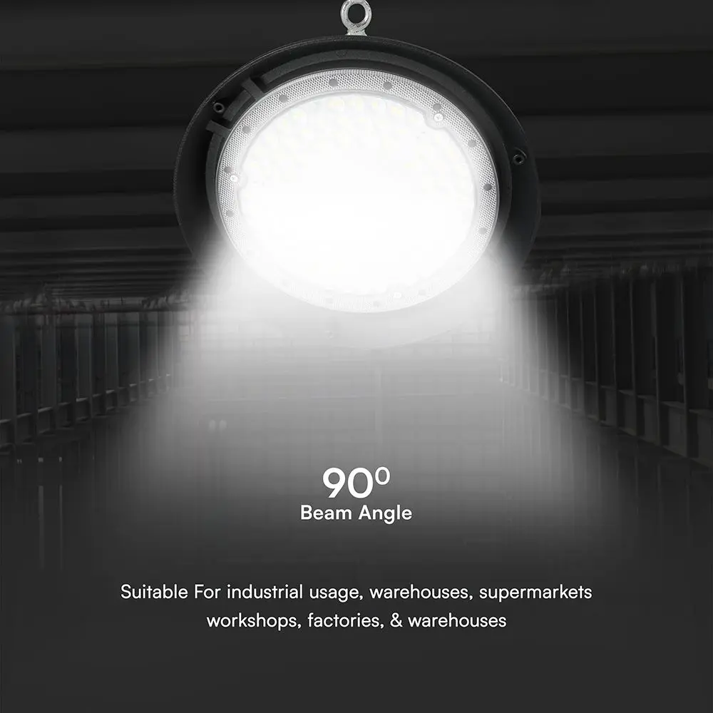 Lampa przemysłowa LED HighBay UFO - 150W 24000lm 160lm/W - VT-9-156S-1, to oprawa która jest alternatywą dla lamp metalohalogenowych czy sodowych. Stosowana jest w szczególności do oświetlania obiektów takich jak magazyny wysokiego składowania, hale produkcyjne, galerie, obiekty sportowe, hale przemysłowe i linie produkcyjne. Oprawa przemysłowa LED High Bay to produkt z serii inwestycyjnych o podwyższonej żywotności i jakości.
