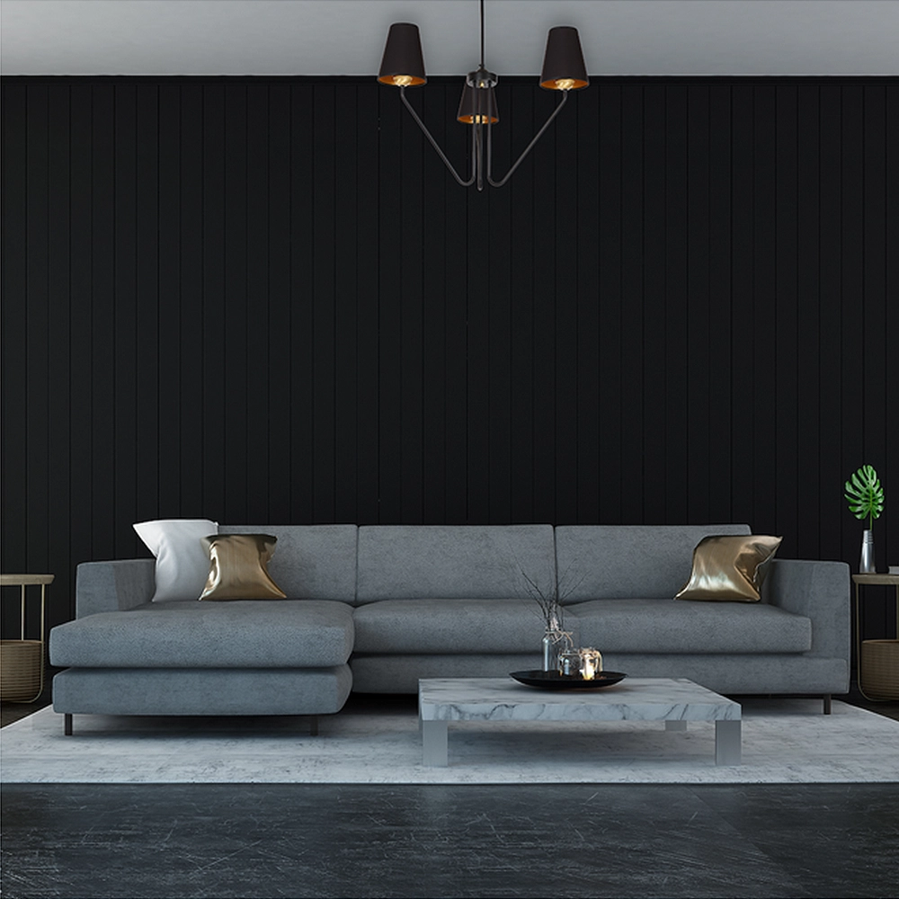- Salon w Stylu Loftowym lub Nowoczesnym: Czarna, metalowa konstrukcja idealnie komponuje się z betonem, cegłą czy surowym drewnem. Dzięki trzem punktom świetlnym, lampa skutecznie doświetli strefę wypoczynkową o powierzchni do 15-20 m².