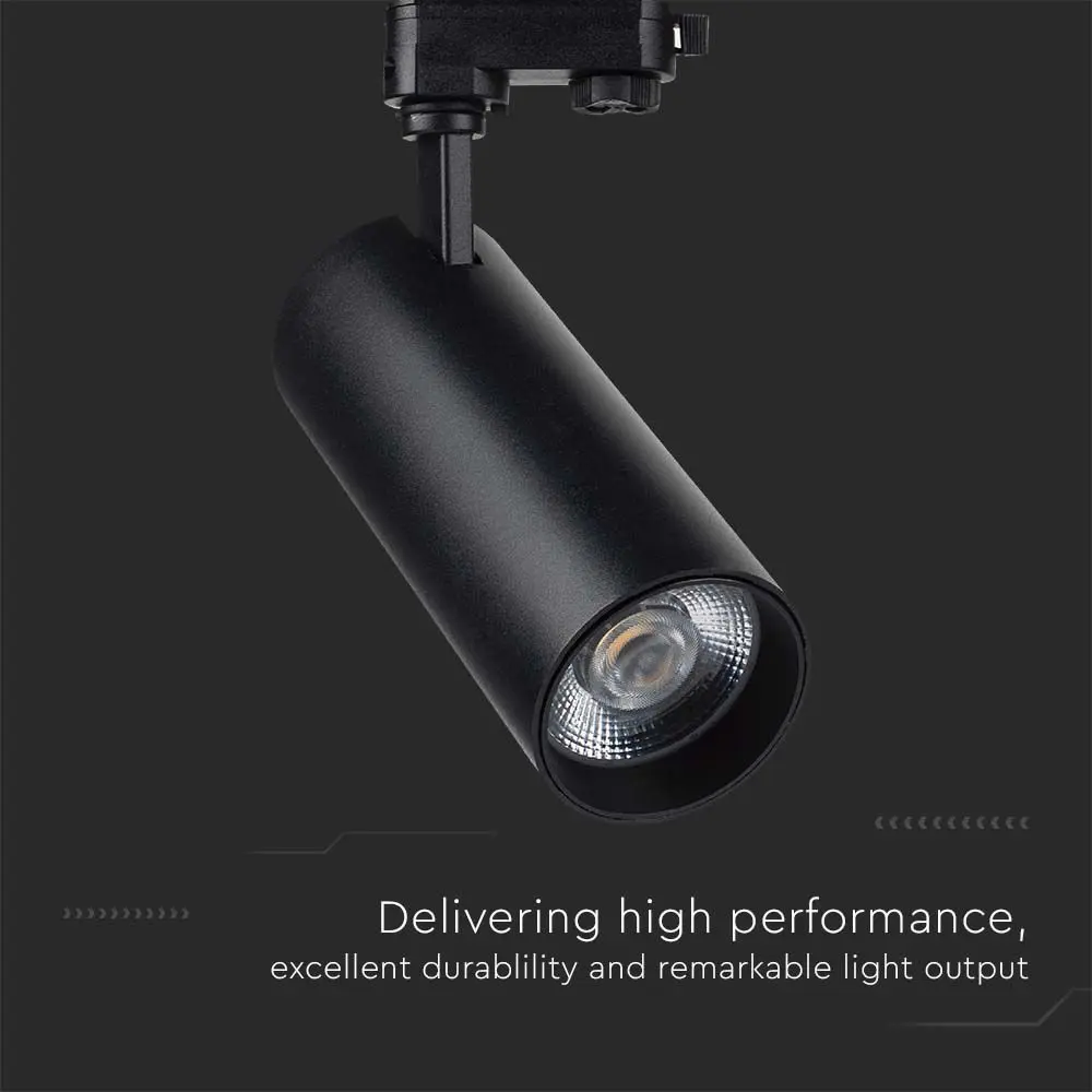 Lampa szynowa LED wykonana z wysokiej jakości aluminium wyposażona w zabudowane źródło światła w postaci diody LED COB przeznaczona do montażu na szynoprzewodzie 3-fazowym. Fundamentalnym atutem, wyróżniającym reflektor szynowy jest sposobność ustawienia oprawy oświetleniowej w dowolnym położeniu na szynie zarówno w pozycji pionowej jak i poziomej. Wszystkie źródła światła można dowolnie przesuwać i wpinać w zależności od potrzeb. Takie rozwiązanie daje bezmierne możliwości konfiguracji oświetleniowej wedle upodobań i nieograniczonej kreatywności.