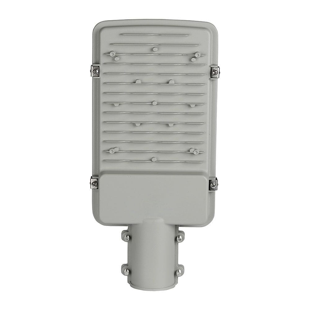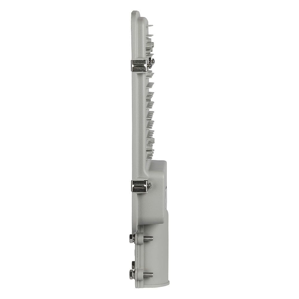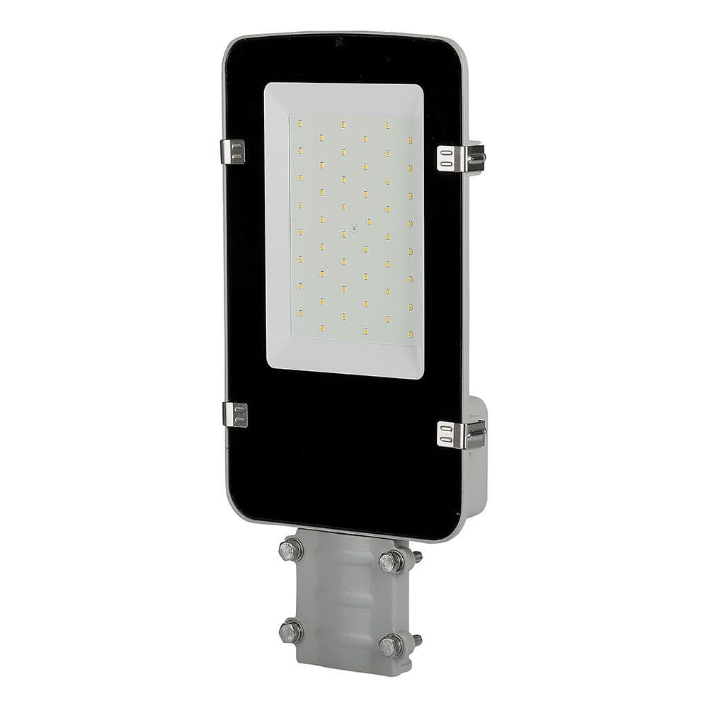 Lampa uliczna LED VT-30ST o mocy 30W oferowana w dwóch temperaturach barwowych do wyboru (barwie neutralnej 4000K oraz w barwie zimnej 6400K). Lampę LED cechuje duża skuteczność świetlna która wynosi 120lm/W. Obudowa lampy wykonana została z odlewanego ciśnieniowo aluminium, pokrytego powłoką malarską w szarym kolorze oraz hartowanego szkła w przypadku dyfuzora.