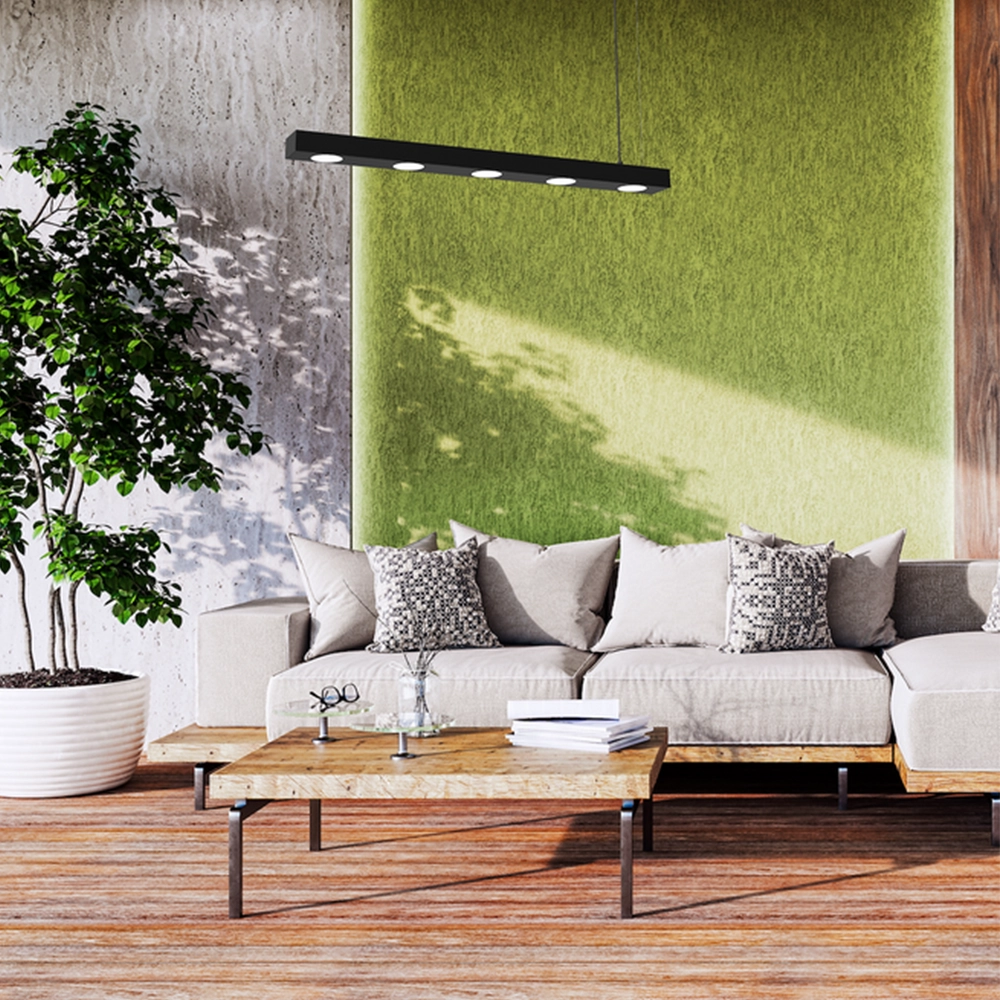 Podłużna lampa sufitowa ALEXANDER 5xGX53 to idealne rozwiązanie do oświetlenia stołu w jadalni, wyspy kuchennej lub blatu roboczego. Jej nowoczesny, minimalistyczny design w kolorze czarnym doskonale współgra z wnętrzami urządzonymi w stylu loftowym, industrialnym czy skandynawskim, dodając im elegancji i wyrazistego charakteru.