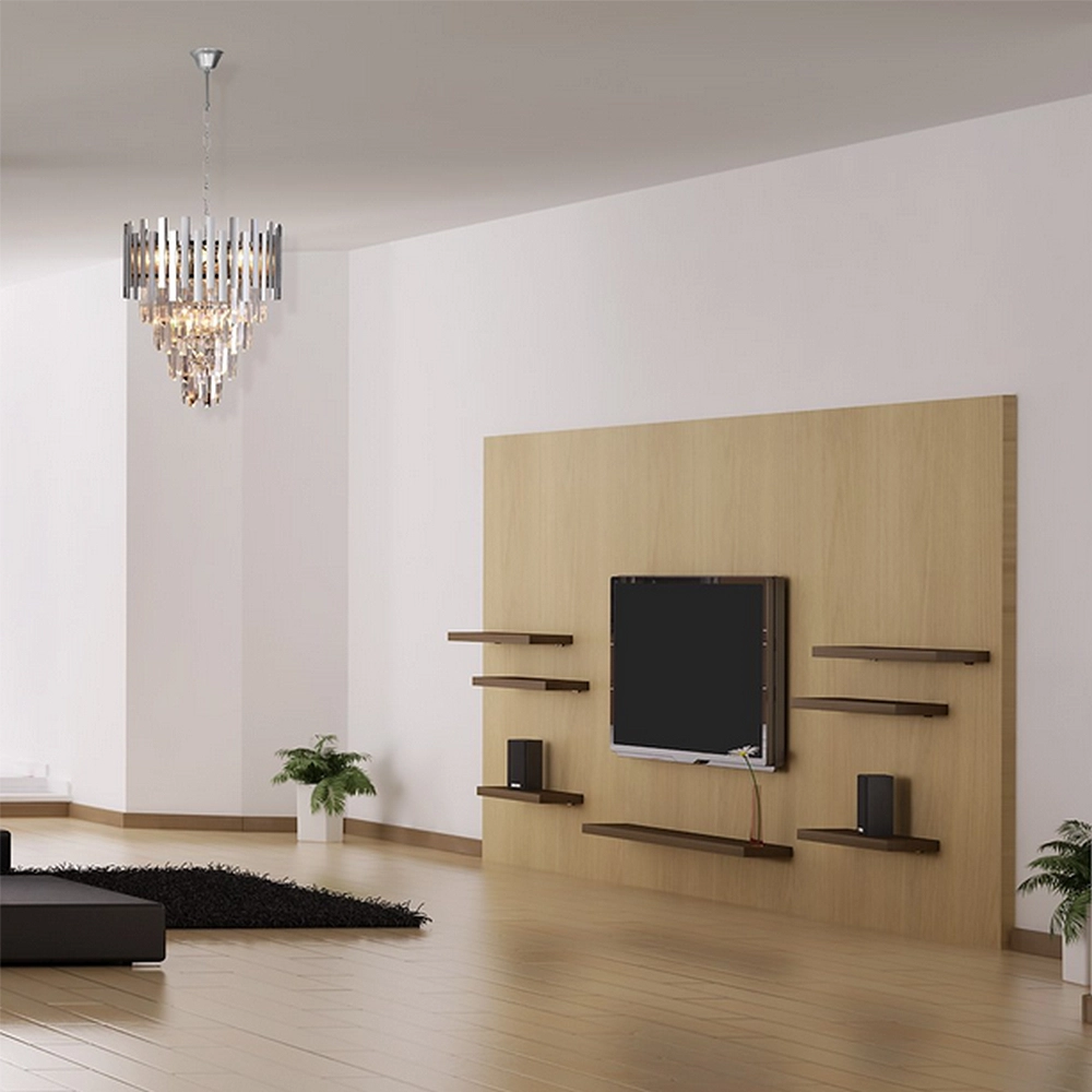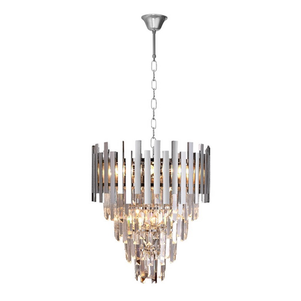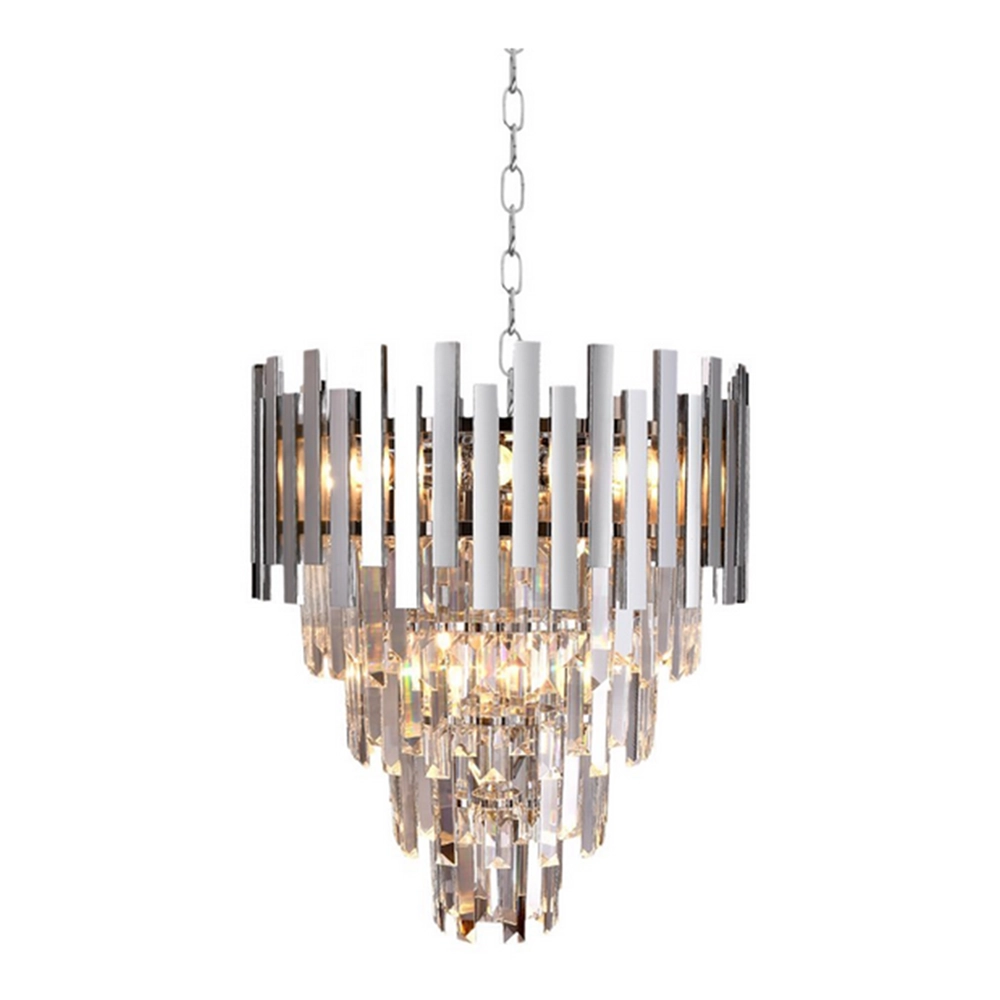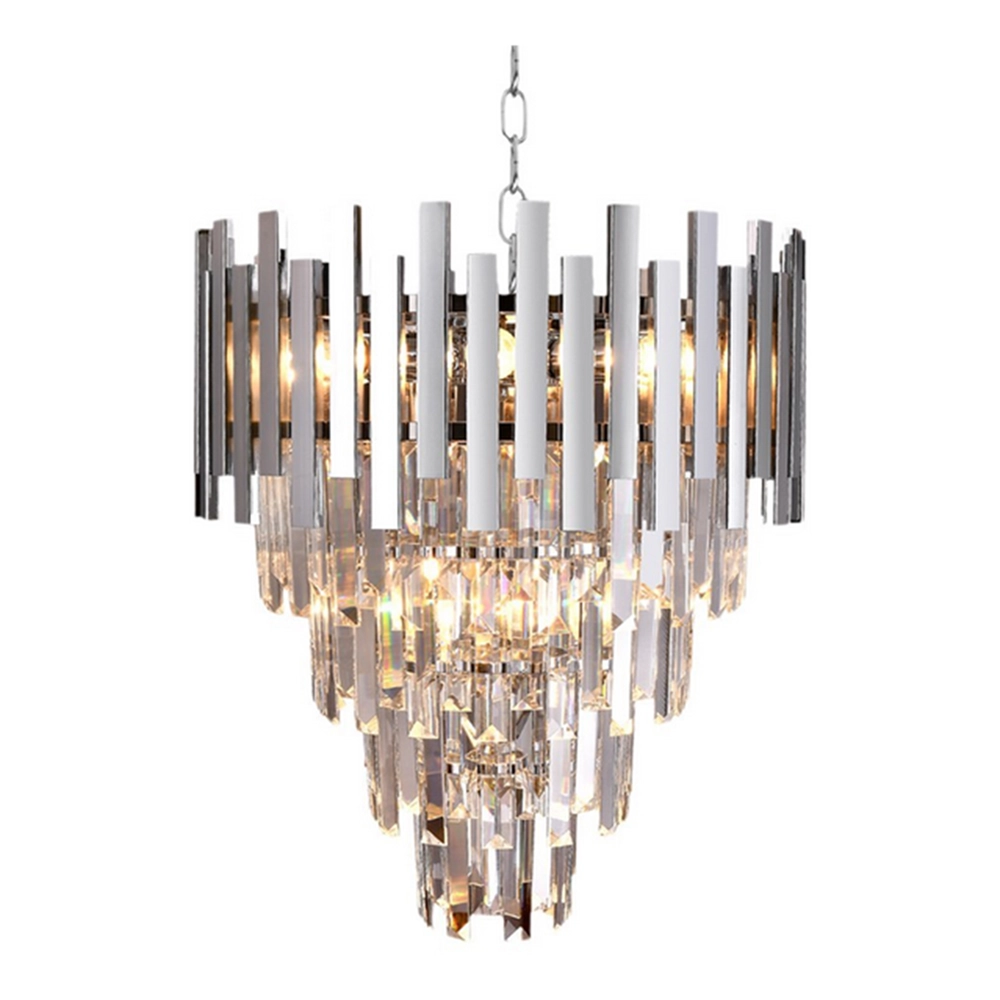 Kaskadowy układ kryształów pięknie rozprasza światło, dzięki czemu lampa ASPEN 9xE14 efektownie oświetla pomieszczenie i wprowadza nastrojowy klimat. Wysokiej jakości materiały – metal oraz kryształowe elementy – gwarantują trwałość, odporność na uszkodzenia i niezmienny wygląd przez długie lata użytkowania. Chromowane elementy odbijają światło, wzmacniając efekt elegancji i nowoczesności, co sprawia, że lampa doskonale pasuje zarówno do klasycznych, jak i nowoczesnych aranżacji wnętrz.