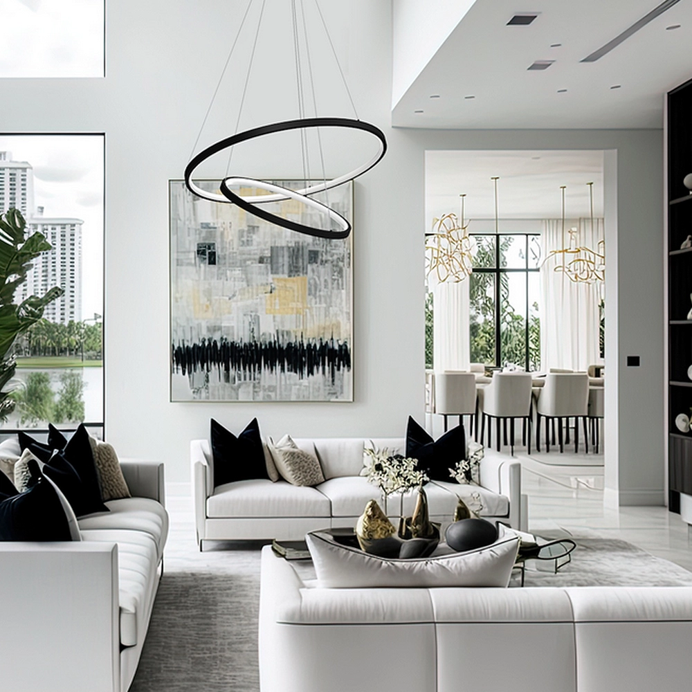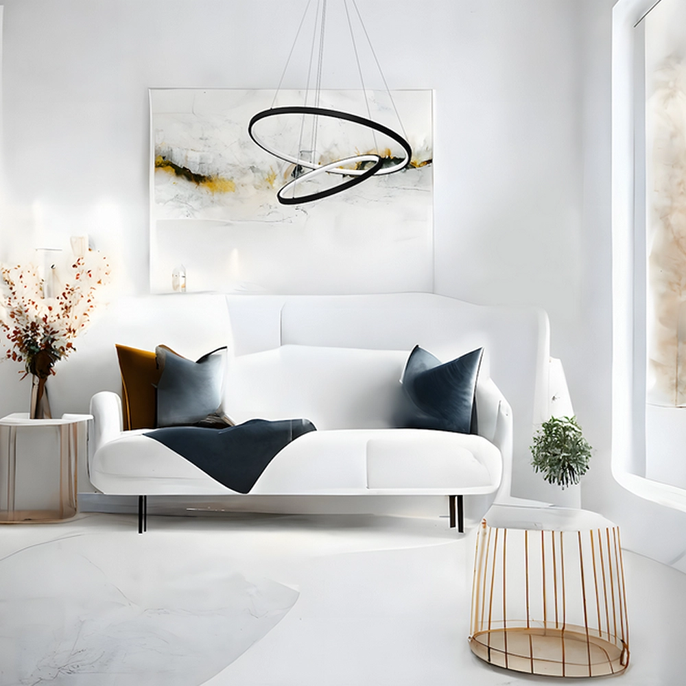 - Centrum nowoczesnego salonu: Dzięki średnicy i charakterystycznej formie ringu, lampa staje się centralnym punktem aranżacji. Barwa 4000K sprawia, że kolory mebli i dodatków wyglądają naturalnie, a przestrzeń wydaje się większa i bardziej sterylna.