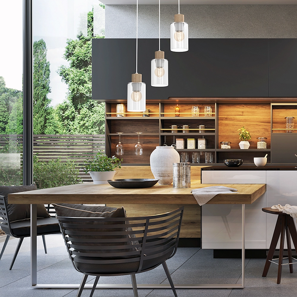 - Wysokie loftowe kuchnie: Dzięki możliwości regulacji wysokości, lampa ta jest niezwykle elastyczna. Możesz ją opuścić nisko nad wyspę kuchenną, tworząc kameralny nastrój, lub podciągnąć wyżej, aby zyskać ogólne oświetlenie pomieszczenia.