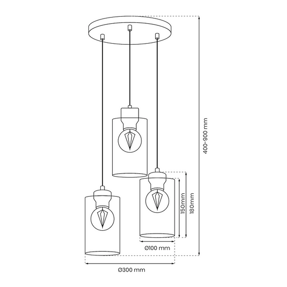 - Potężna moc oświetleniowa: Trzy punkty świetlne o obsłudze do 60W każdy (łącznie 180W dla tradycyjnych żarówek lub odpowiednik ok. 3000-4000 lumenów przy LED) gwarantują, że nawet duży salon o powierzchni 20-25 m² zostanie wypełniony odpowiednią ilością światła.