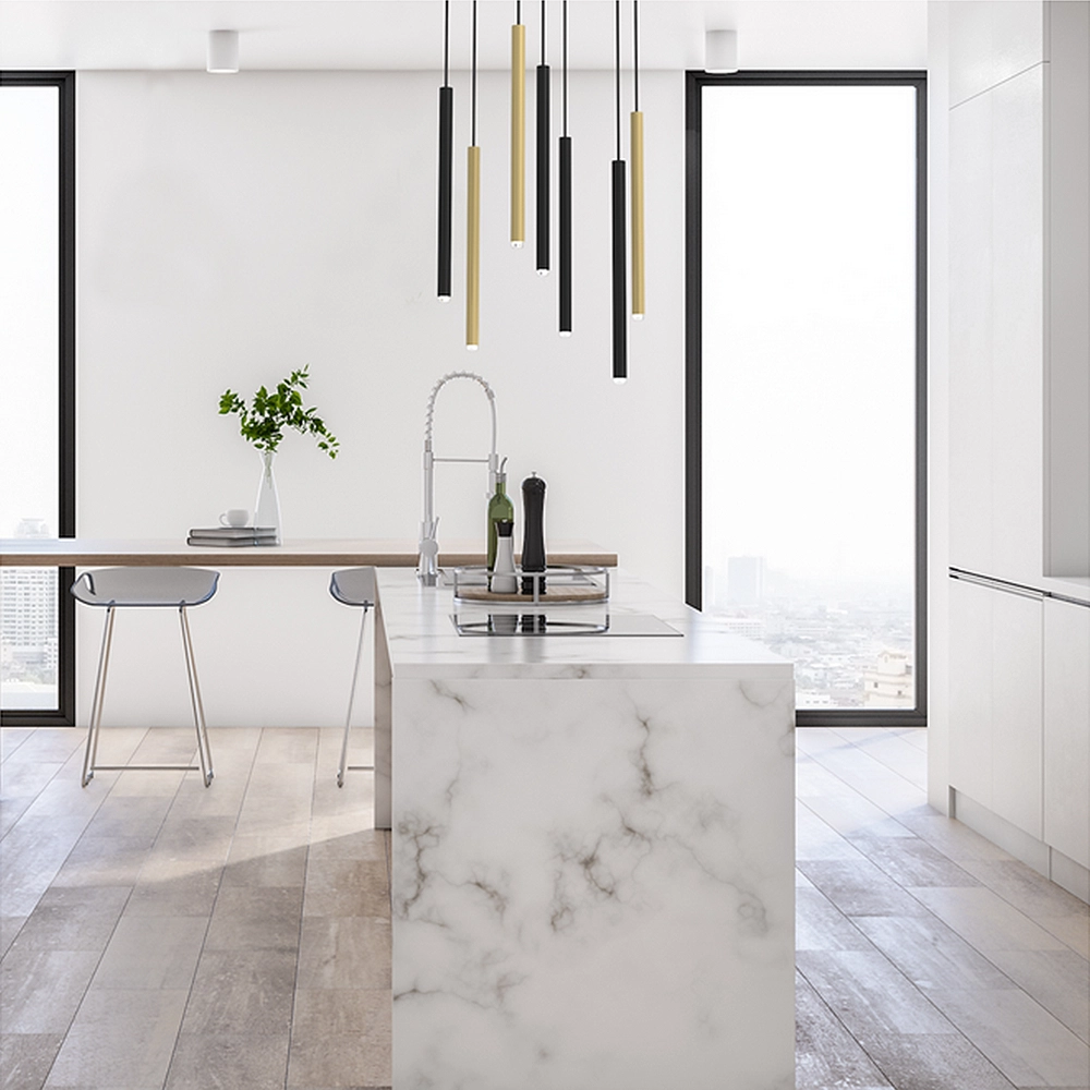 - Strefa jadalni (nad stołem): Dzięki regulowanej wysokości (50–90 cm), lampę możesz zawiesić nisko nad blatem, tworząc intymną atmosferę podczas kolacji, lub wyżej, aby równomiernie oświetlić cały stół podczas pracy czy nauki.