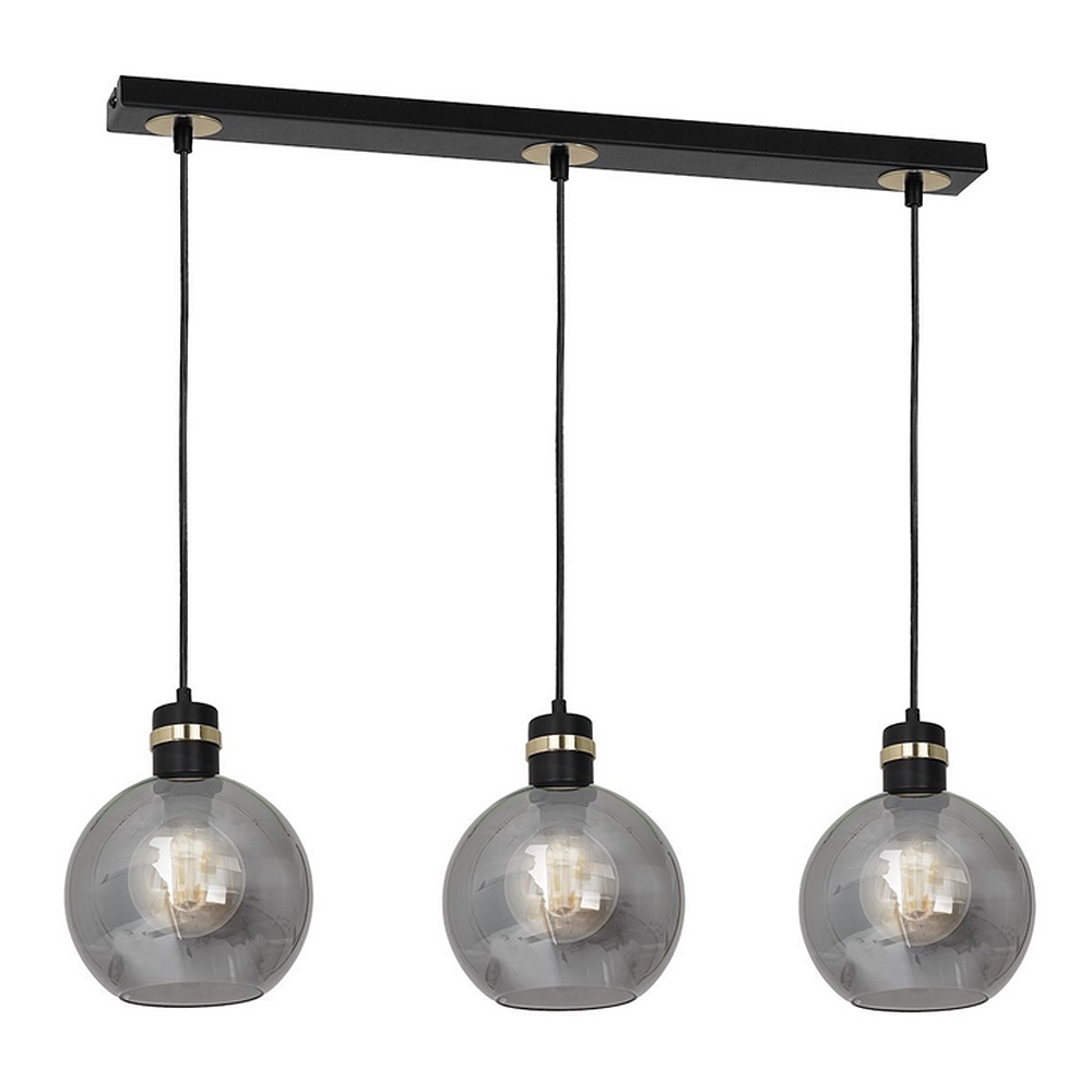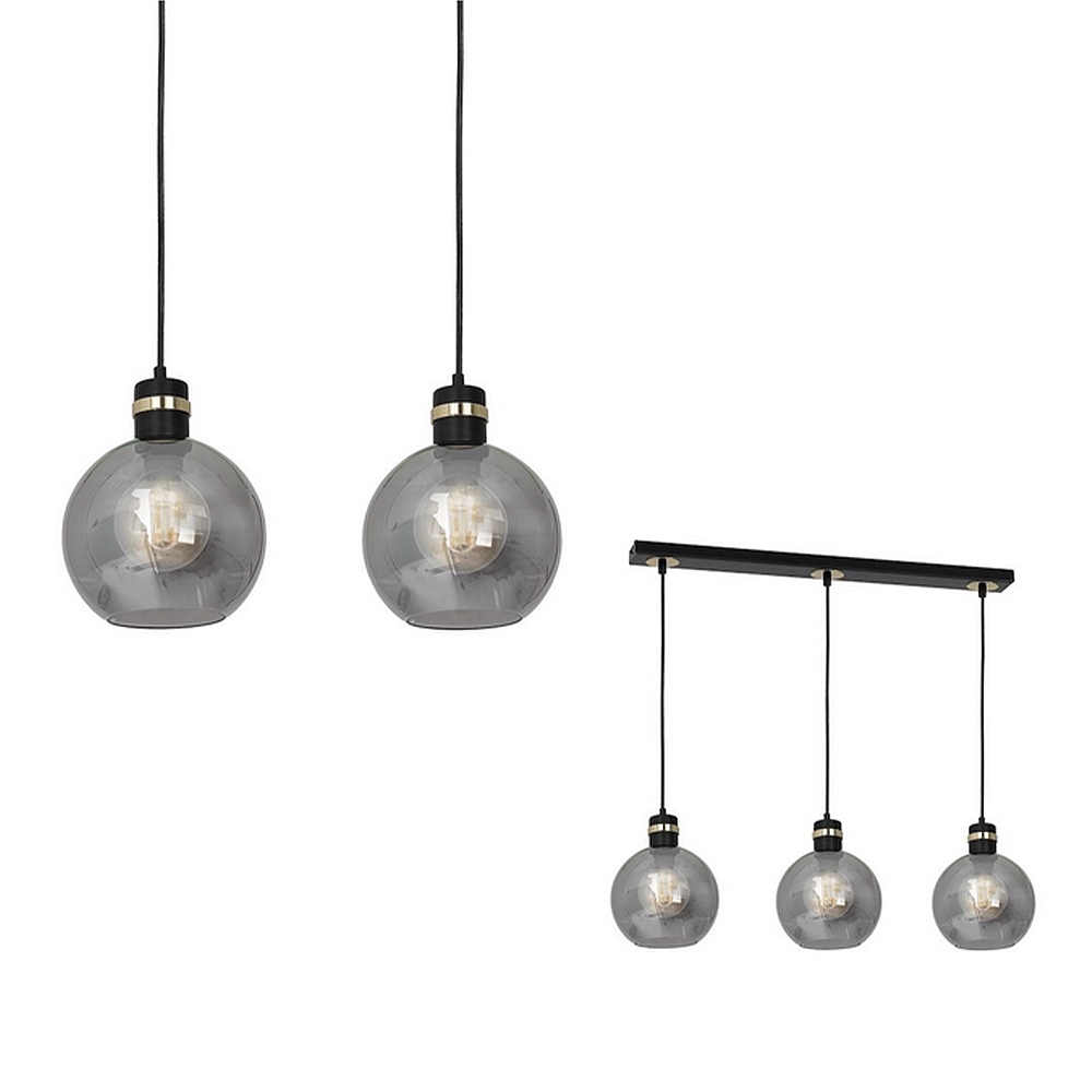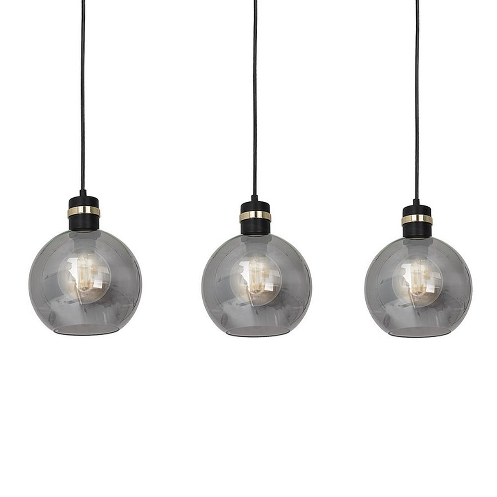 - Centralny punkt nad stołem w jadalni: Dzięki trzem punktom świetlnym E27, oprawa idealnie doświetla blat o długości nawet 160-180 cm. Możliwość skrócenia kabli do 40 cm sprawia, że lampa nie będzie przeszkadzać biesiadnikom, a złote wnętrze kloszy nada potrawom apetyczny, ciepły wygląd.