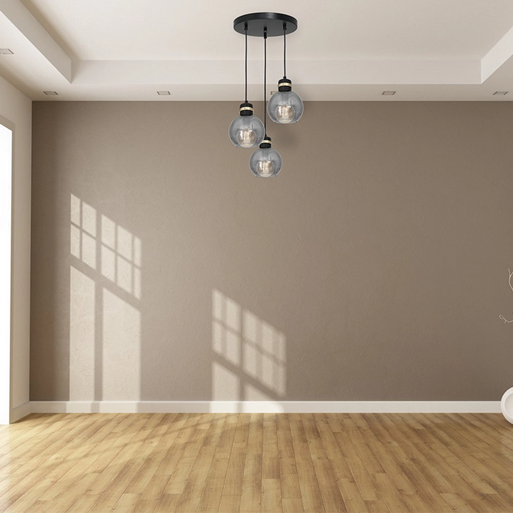 - Centralny punkt nad stołem w jadalni: Dzięki trzem punktom świetlnym (3xE27), lampa idealnie doświetla blat o długości nawet 180–200 cm. Złote wnętrze kloszy sprawia, że emitowane światło nabiera ciepłej, przytulnej barwy, co sprzyja budowaniu atmosfery podczas rodzinnych kolacji.
