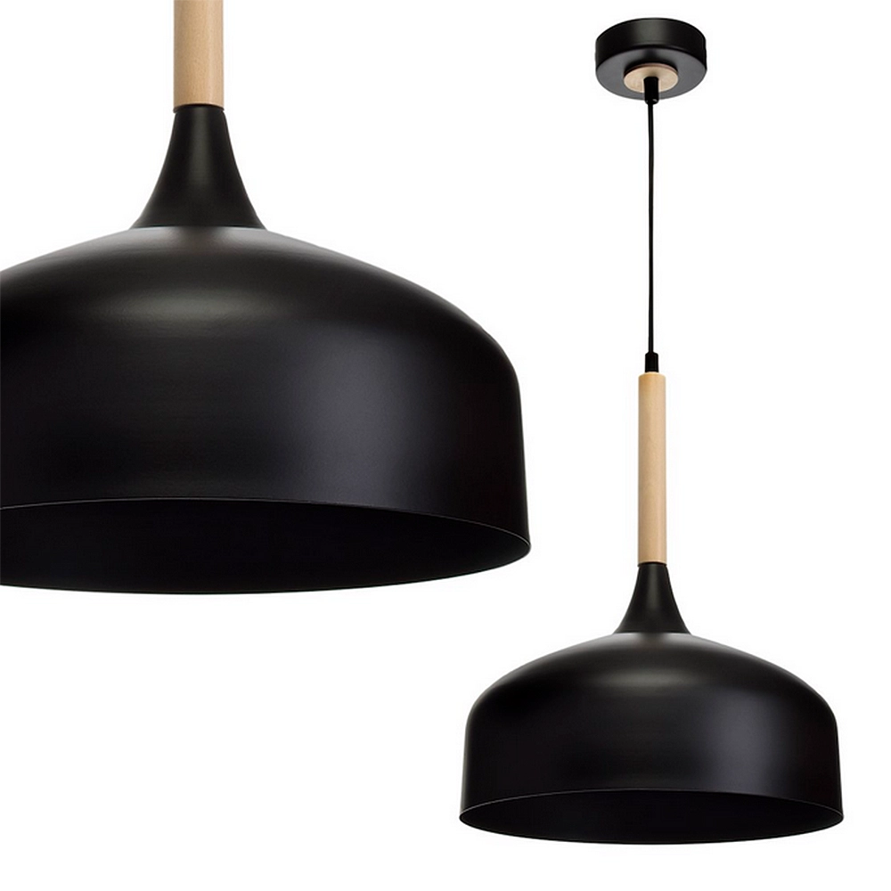 - Nowoczesny salon w stylu loftowym: W wysokich pomieszczeniach (np. w kamienicach lub loftach) lampa TAYLOR może pełnić rolę oświetlenia akcentującego nad stolikiem kawowym. Czarna, metalowa czasza podkreśla charakter surowych ścian z betonu lub cegły, podczas gdy drewno "zmiękcza" wizualnie całą aranżację.