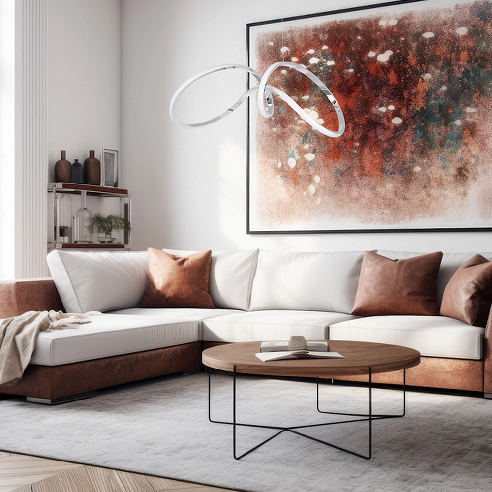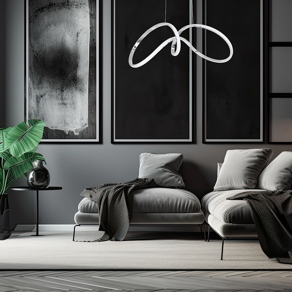 - Strefa wypoczynkowa w wysokim salonie: Chromowane wykończenie odbija otoczenie, sprawiając, że lampa wydaje się lekka i nie przytłacza przestrzeni. W pomieszczeniach o standardowej wysokości 250-270 cm, możliwość skrócenia zawiesia do 50 cm pozwala uniknąć wrażenia "zagracenia" sufitu.