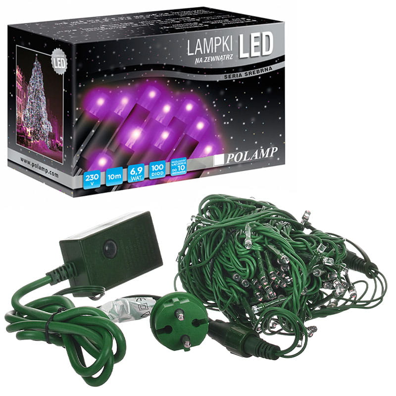 Lampki choinkowe LED z programatorem - 100 LED 10mb IP44 - fioletowe