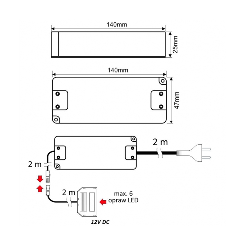 Przedstawiony zestaw to doskonałe rozwiązanie dla osób ceniących sobie ciekawe i gotowe rozwiązania w kategorii oświetlenia LED. Dołączony do zestawu zasilacz wyposażony jest w rozgałęźnik z możliwością podpięcia aż do sześciu opraw opraw przewodu zasilającego z wtyczką o długości 200cm, pozwalający na bezpośrednie podłączenie zestawu do sieci 230V.