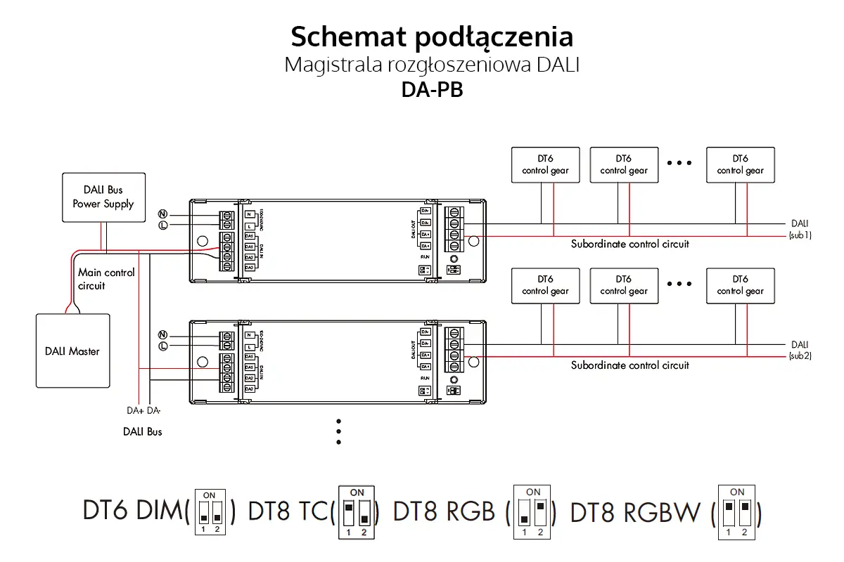 Schemat instalacji - Magistrala rozgłoszeniowa DALI DA-PB