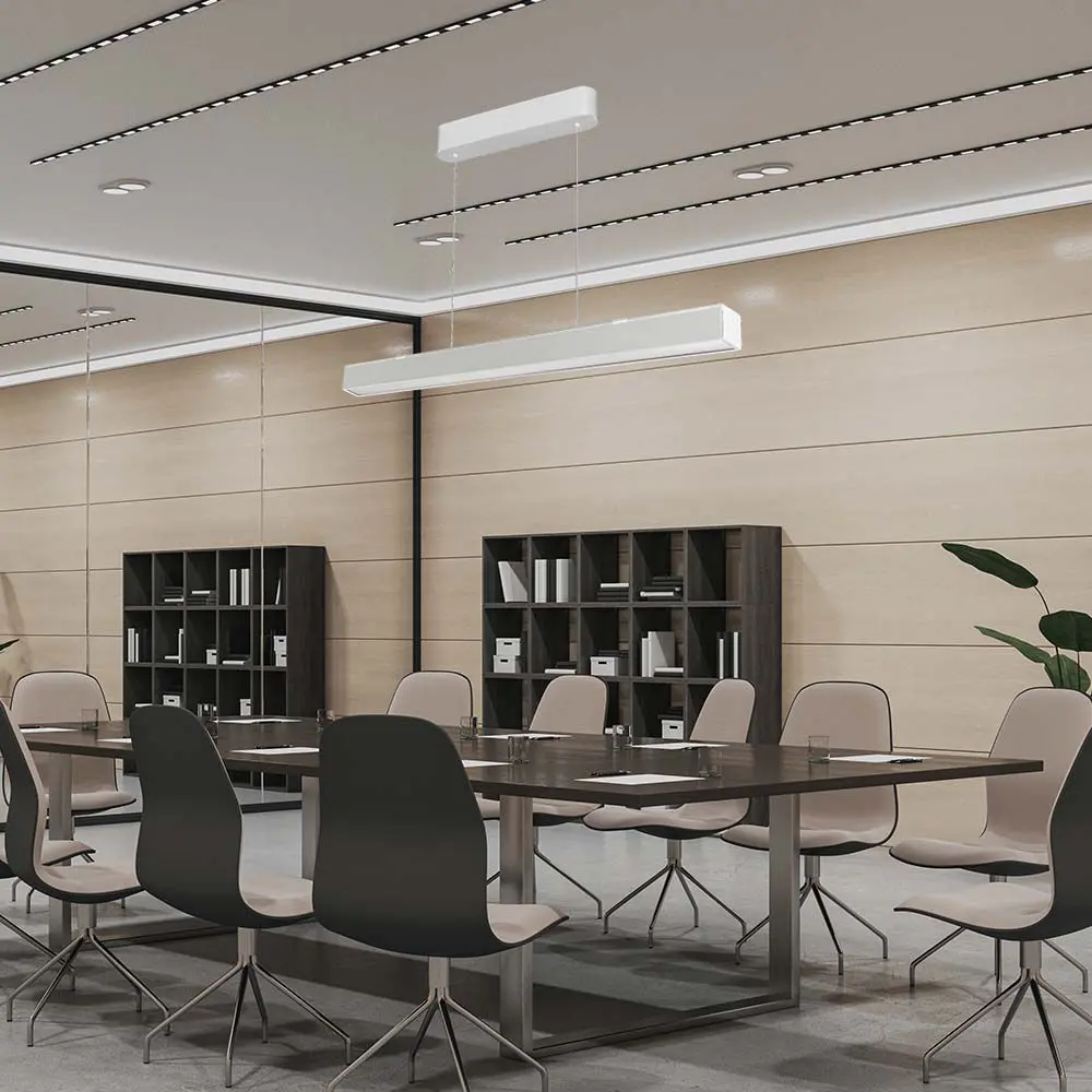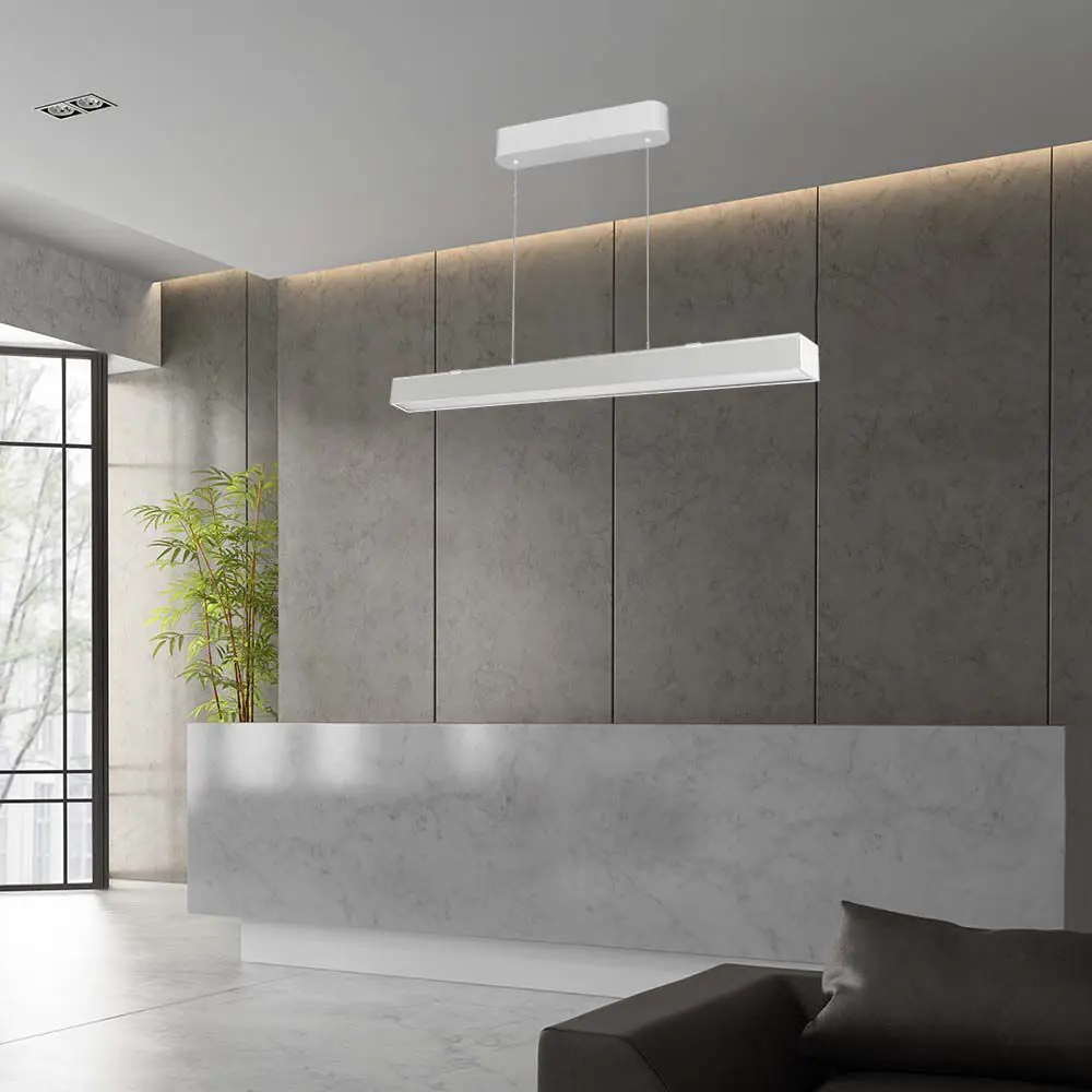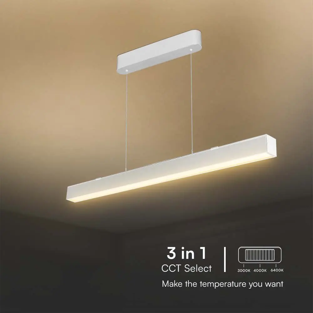 Oprawa liniowa LED montowana jest nawierzchniowo za pomocą zawiesi linkowych będących w zestawie. Zawiesia umożliwiają również dostosowanie odpowiedniej długości oprawy liniowej LED od sufitu (w zakresie od 50cm do 200cm). Produkt zaprojektowany z przełącznikiem do zmiany barwy ( 3000K / 4000K/ 6400K) - co pozwala na przełączenie na preferowaną barwę oświetlenia w dowolnym momencie użytkowania.