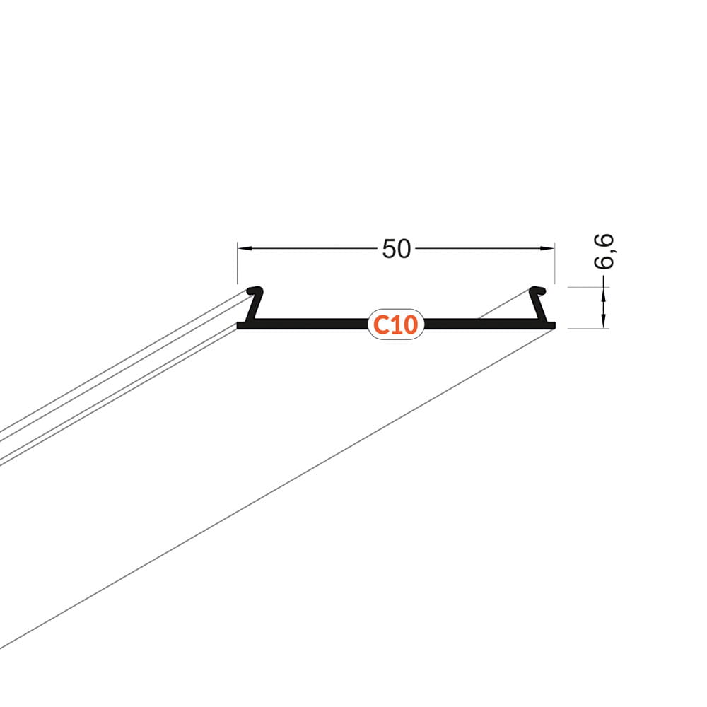 Aluminiowa osłona maskująca C10, stosowana w przypadkach gdy chcemy zabudować pustą, niewykorzystywaną przestrzeń w profilu. Wykonana z surowego aluminium malowanego proszkowo w kolorze białym. Osłony nie trzeba wsuwać, wystarczy ją tylko wcisnąć. Podstawową funkcją osłony zatrzaskowej jest estetyczne zamknięcie profilu, oraz zabezpieczenie go przed czynnikami zewnętrznymi w stopniu większym a niżeli ma to miejsce w przypadku kloszy wsuwanych.