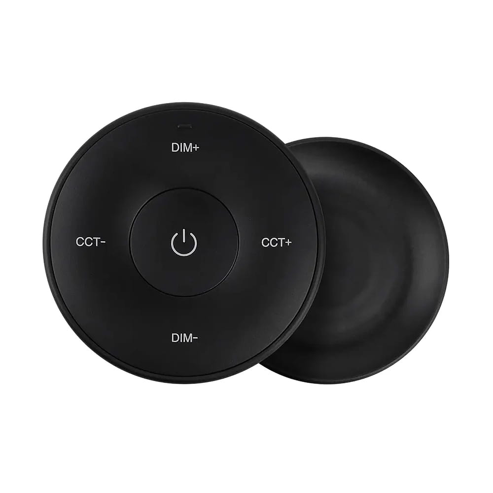 Panel LED naścienny - Mono/CCT - 1 strefowy - 3V - K2S-B, to bezprzewodowy panel radiowy w formie mobilnego przycisku, który przeznaczony został do instalacji LED MONO bądź CCT. Panel naścienny K2S-B umożliwia ściemnianie oraz rozjaśnianie instalacji LED składającej się z taśm jednokolorowych lub zmianę temperatury barwowej dla taśm CCT ze zmienną temperaturą barwową w zakresie 2700-6500K. Sterowanie strefą, możliwe jest przy pomocy fizycznych przycisków znajdującego się na obudowie ściemniacza K2S-B. Ściemniacz LED przeznaczony jest do montażu natynkowego na elementach metalowych z uwagi na zabudowany silny magnes wewnątrz obudowy. Można go dowolnie zdemontować, używając go jako przenośne urządzenie. Urządzenie to zasilane jest baterią 3V o oznaczeniu CR2032. Obudowa ściemniacza LED K2S-B wykonana została w kolorze czarnym.