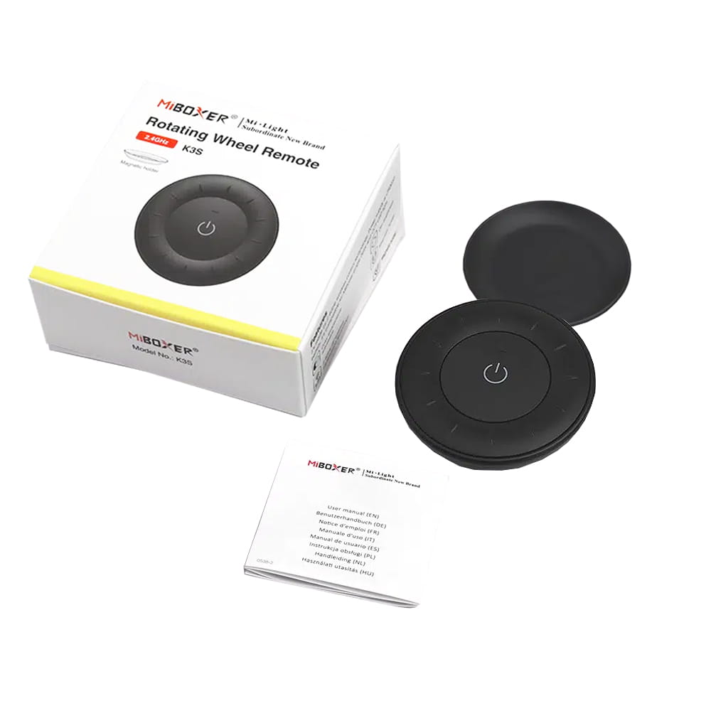 Panel naścienny MiBoxer K3S umożliwia bardzo szybki i prosty dostęp do instalacji LED składającej się z taśmy LED CCT bądź MONO. Umożliwia mu to rotacyjny pierścień znajdujący się na wyjmowanym okrągły panelu. Jego obrót pozwala regulować temperaturę barwową CCT w zakresie 2700-6500K oraz natężenie jasności dla połączonej taśmy LED. Środkowy przycisk z kolei pozwala szybko załączyć oraz wyłączyć instalacje LED. Oczywiście nic nie stoi na przeszkodzie, by zastosować standardową taśmę jednokolorową LED i sprawdzić by panel naścienny MiBoxer K3S pracował jako ściemniacz do LED.
