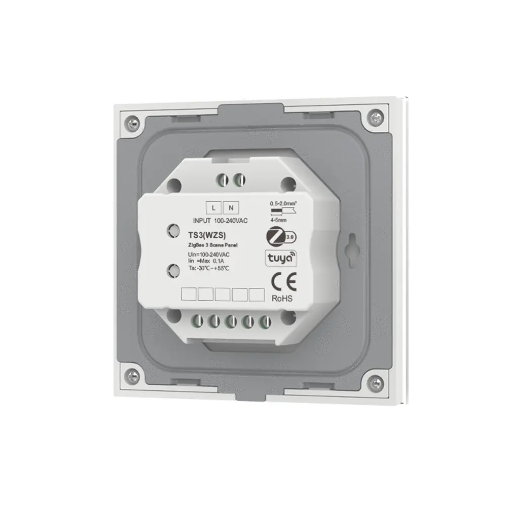 Panel LED naścienny - Zigbee 3.0 - 3 sceny - 230V - TS3(WZS)(B) - to dotykowy sterownik LED w formie bezprzewodowego panelu naściennego led, który dedykowany jest do instalacji opartych o protokół komunikacji zigbee 3.0. Panel naścienny TS3(WZS) może być wykorzystany za równo do instalacji składających się z jednokolorowej taśmy LED lub wielokolorowej z możliwością zmiany temperatury barwowej RGB+CCT (np. taśma LED RGB+CCT). Panel naścienny LED TS3(WZS) posiada trzy dotykowe przyciski funkcyjne, do których możemy przypisać różne scenariusze (np. włączenie/wyłączenie oświetlenia LED czy ustalenie konkretnego poziomu jasności bądź koloru dla taśmy LED). Komunikacja sterownika LED TS3(WZS), wykorzystuje bezprzewodową łączność z aplikacją mobilną Tuya APP/Smart APP, która mimo uzyskania dostępu do instalacji led, pozwala również na szybką konfigurację i określenie funkcji przeznaczonej dla naszych scen. Do zestawu dołączone są naklejki w języku angielskim, które można nakleić na pole dotykowe