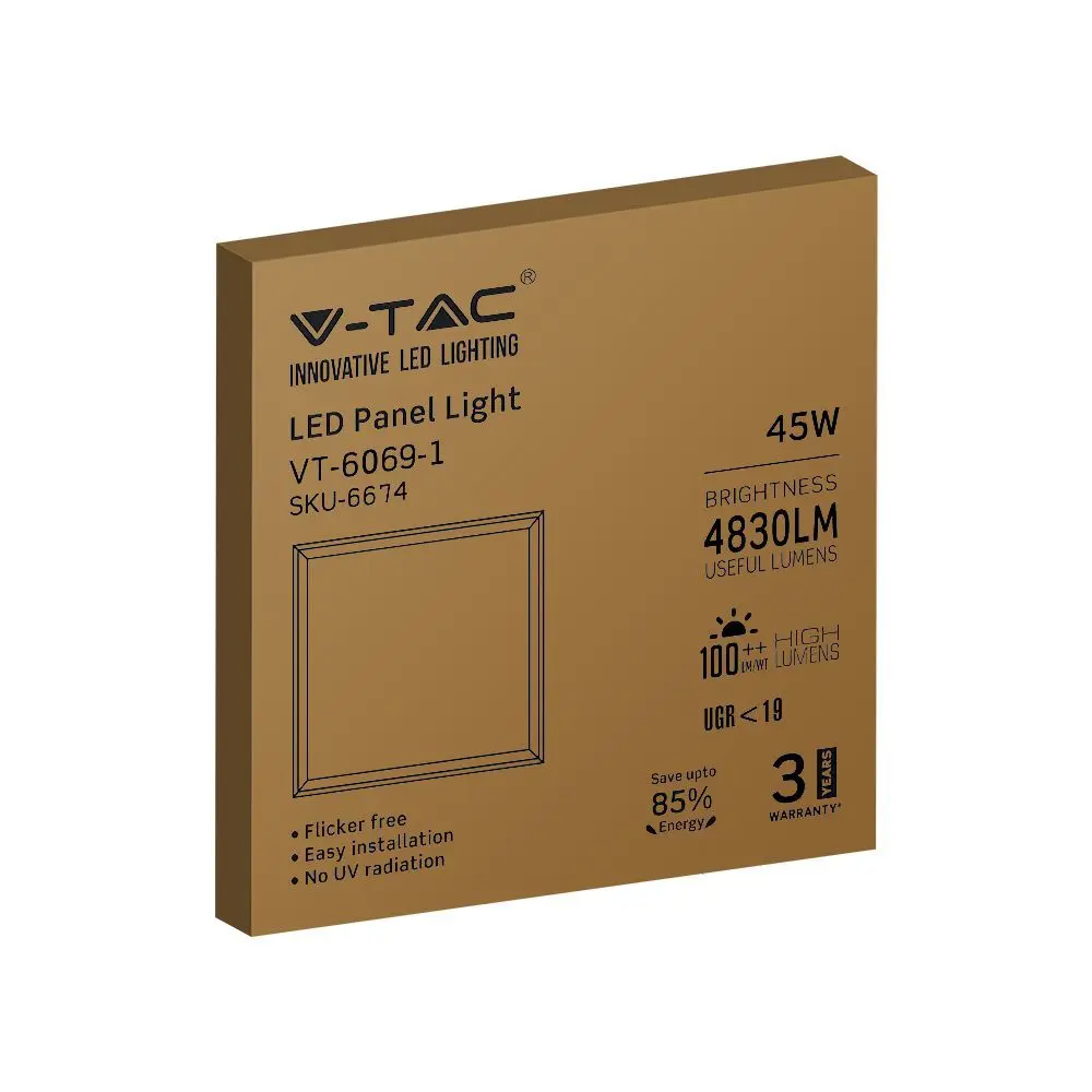 Panel sufitowy LED 62x62cm 45W 4830lm - 100lm/W - UGR<19 - VT-6069-1