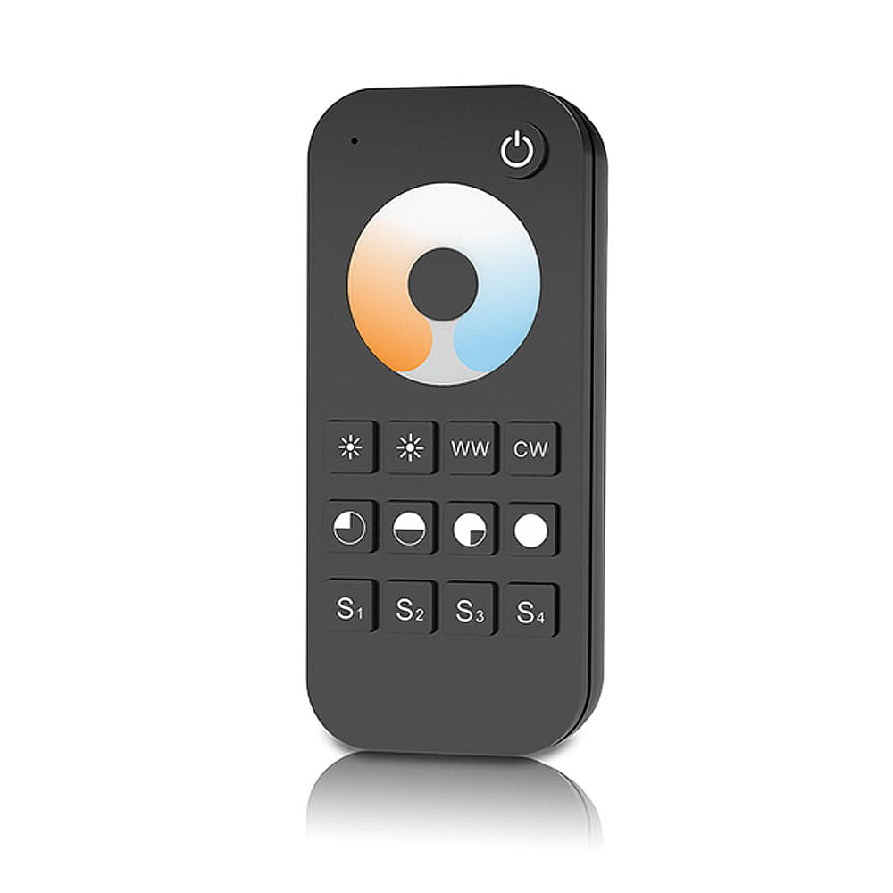 Pilot LED - CCT - 1 strefowy - RT2, to wysokiej klasy pilot radiowy LED dedykowany dla instalacji led składającej się z oświetlenia LED ze zmienną temperaturą barwową (np. taśma LED CCT) Pilot radiowy do LED RT2 umożliwia płynne ściemnianie/rozjaśnianie oraz zmiane temperautury barwowej w zakresie 2700-6500K dla jednej z dostępnych stref z wykorzystaniem bezprzewodowej drogi radiowej bazującej na częstotliwości 2.4GHz. Komunikacja radiowa pilota LED cechuje się zasięgiem komunikacji na poziomie 30 metrów w terenie otwartym oraz możliwością przedłużenia wykorzystując do tego retransmisje sygnału pomiędzy zastosowanymi odbiornikami LED. Pilot LED - CCT - 1 strefowy - RT2 cechuje się przede wszystkim nietuzinkowym matowym wykończeniem oraz wysoką jakością wykonania poprzedzoną pięcioletnim okresem gwarancyjnym.