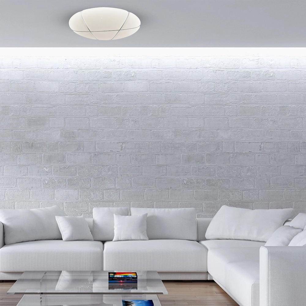 - Nowoczesny Salon: Duża średnica oprawy (490 mm) czyni ją centralnym punktem pomieszczenia. W ciągu dnia barwa neutralna (4000K) pobudzi do działania, a wieczorem barwa ciepła nada wnętrzu luksusowego, domowego charakteru.